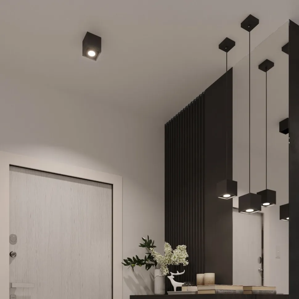 Plafon Quaddostępny jest w różnych opcjach. Dostępny jest w formie sześcianu, wydłużonego prostopadłościanu lub połączenia dwóch form. Wyborowi podlega również kolor lampy. Dostępne są takie kolory jak szary, biały, czarny i kilka innych. Dzięki temu plafon pasował będzie zarówno do przedpokoju, jak i salonu lub sypialni. Sprawdzi się nawet w przestrzeniach komercyjnych jak restauracja, sklep czy hotel.
