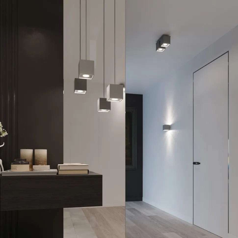 Plafon Quad dostępny jest w różnych opcjach. Dostępny jest w formie sześcianu, wydłużonego prostopadłościanu lub połączenia dwóch form. Wyborowi podlega również kolor lampy. Dostępne są takie kolory jak szary, biały, czarny i kilka innych. Dzięki temu plafon pasował będzie zarówno do przedpokoju, jak i salonu lub sypialni. Sprawdzi się nawet w przestrzeniach komercyjnych jak restauracja, sklep czy hotel.