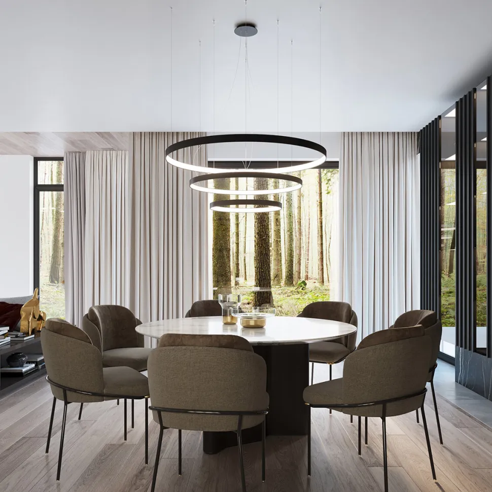 Plafon Rio to przede wszystkim funkcjonalność. Jego okrągły kształtrozprowadzać będzie najwydajniej światło, a umieszczona w środku żarówka LED (dołączona w zestawie) wystarczy na cały czas użytkowania lampy.Dostępne są trzy rozmiarylampy o średnicach 55, 78 i 110 cm.Wyborowi podlega również kolor światła żarówki.W zależności od Twoich upodobań, wybrać możesz zestaw zżarówką o ciepłej barwie (3000K) lub zimnej bieli (4000K). Ten piękny i elegancki przedmiot pasował będzie zarówno do salonu, jadalni czy przedpokoju, lecz również do sklepu, kawiarni czy restauracji.