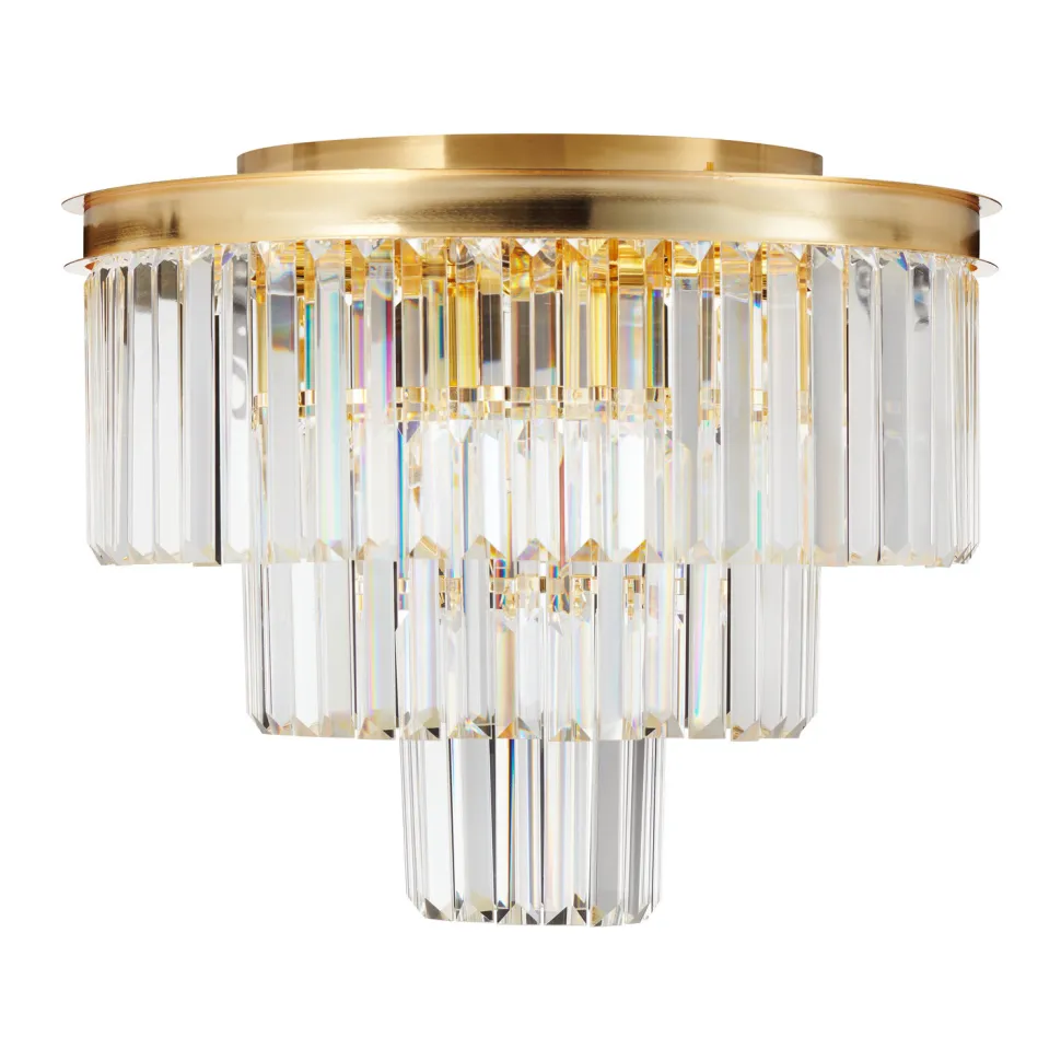 Korpus lampy SPLENDORE wykonany jest z metalu o najwyższej jakości, który pokryty jest złotą powłoką. Taki wybór materiałów sprawia, że lampa prezentuje się niezwykle luksusowo i dodaje wnętrzu wyjątkowego charakteru. Złoty kolor korpusu idealnie komponuje się z kryształowymi elementami, które są głównym elementem dekoracyjnym lampy.