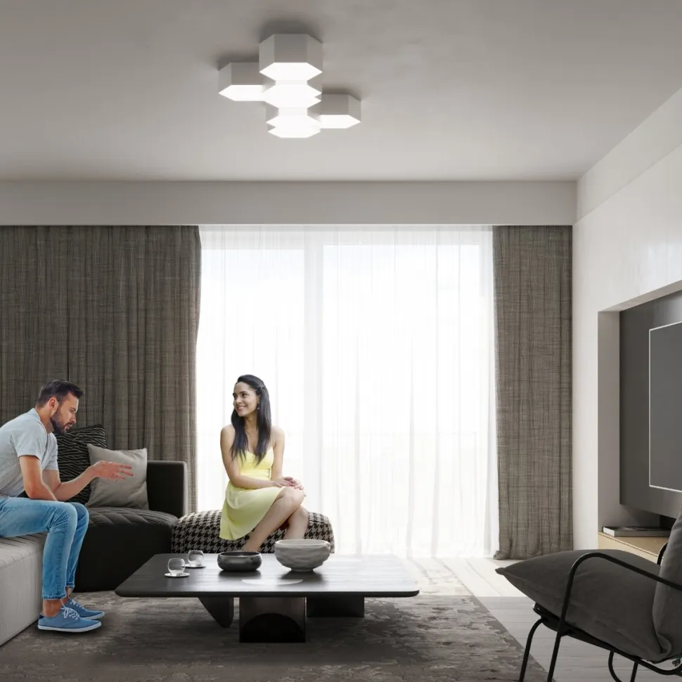 Lubisz geometryczne formy i chcesz, by zagościły na stałe w Twoim wnętrzu? Poznaj Sunde — kolekcję plafonów, które przyciągają uwagę regularnym kształtem heksagonu. Ta nowoczesna forma to nie tylko funkcjonalne oświetlenie, ale i dopełnienie modernistycznych aranżacji, w których króluje minimalizm. Plafony Sunde nie zajmują zbyt wiele przestrzeni, dzięki czemu sprawdzą się nawet w niskich pomieszczeniach. Otoczą ciepłym blaskiem salon, sypialnię lub kuchnie, które potrzebują dużej ilości światła, oraz staną się doskonałym oświetleniem głównym w biurach i gabinetach.