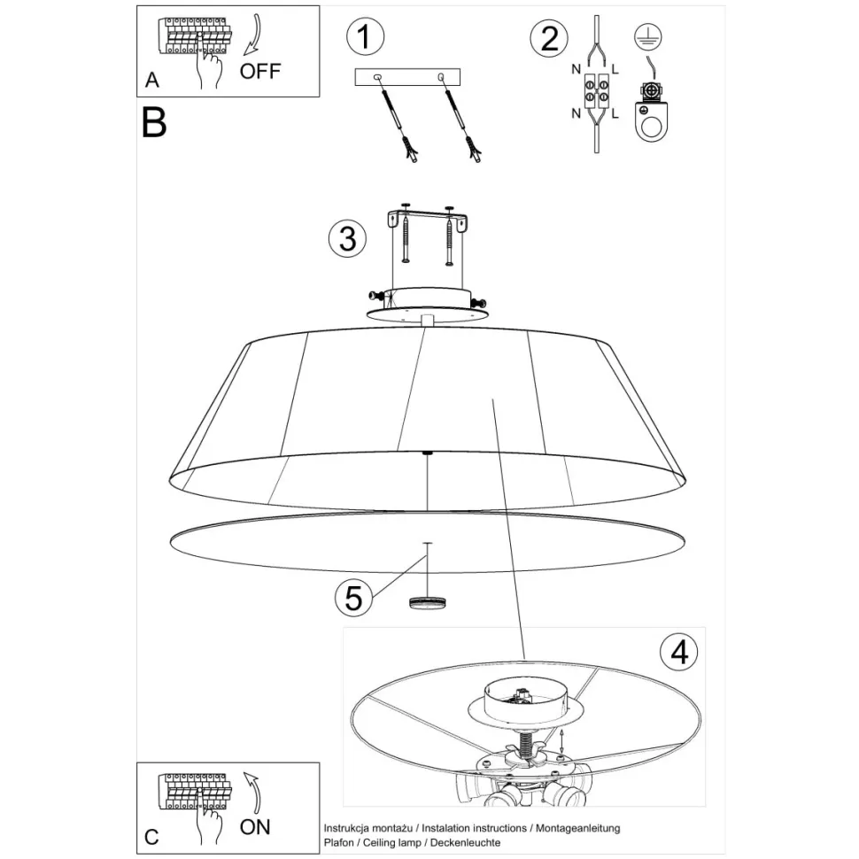 •5 źródeł światła, oprawa żarówki E27 o max. mocy 60W