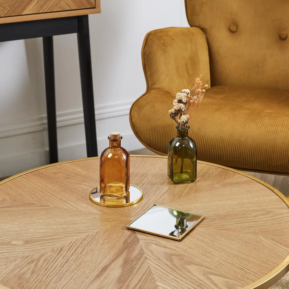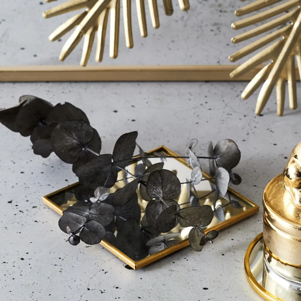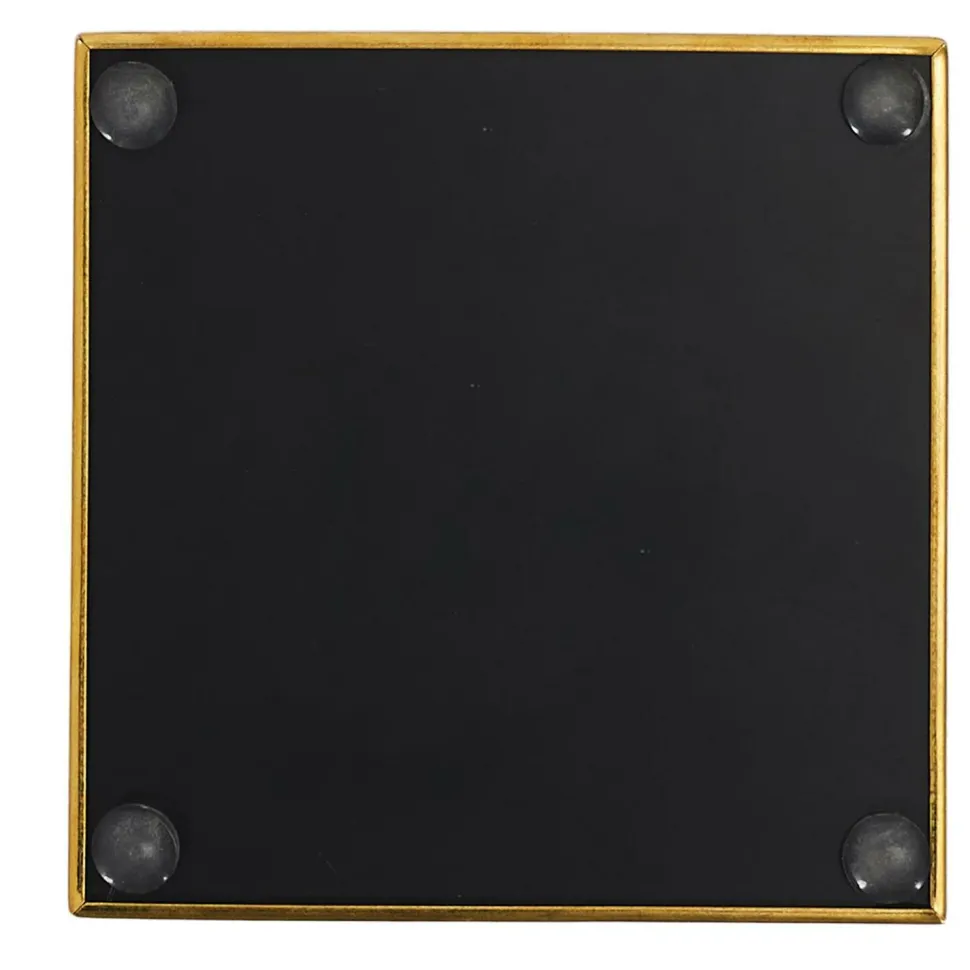 Wykonana z trwałego szkła i mosiądzu, podstawka zapewnia stabilność i wytrzymałość, co czyni ją nie tylko pięknym, ale również funkcjonalnym elementem dekoracyjnym. Jej lustrzana powierzchnia odbija światło, co dodatkowo rozświetla przestrzeń i tworzy wrażenie większej przestronności. Kwadratowy kształt sprawia, że podstawka jest wyjątkowo uniwersalna, pasując do różnych aranżacji i spełniając różne funkcje, od trzymania kosmetyków po biżuterię.