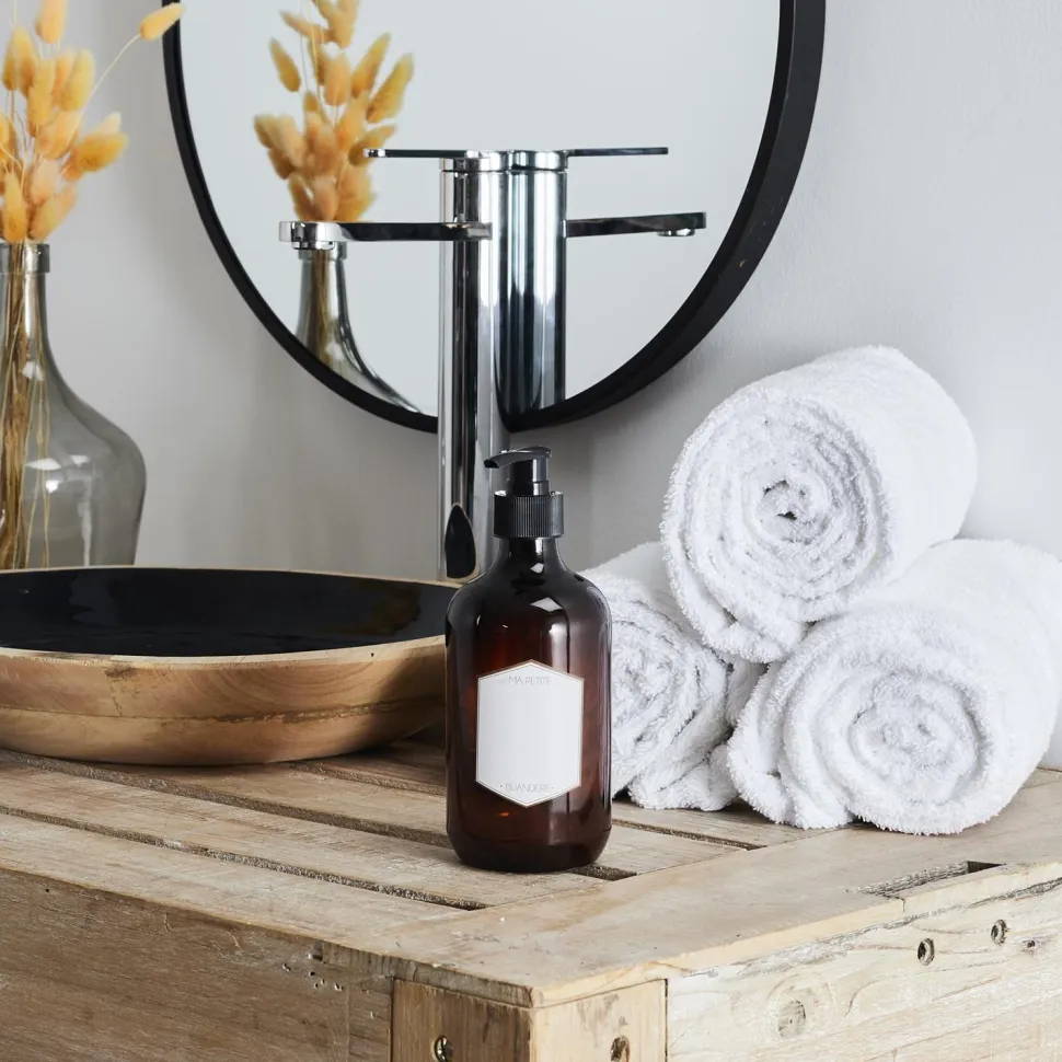 Dozownik o bursztynowym kolorze, posiada etykietę na której możemy napisać co dokładnie się w nim znajduje. Dzięki stylowemu pojemnikowi możemy nie tylko przechowywać w nim mydło przy umywalce, ale również może to być balsam do rąk. Dzięki pojemnikowi wielokrotnego użytku, możemy go uzupełniać bez konieczności kupowania drogich mydełek z pompkami. Pojemnik ma pojemność 500 ml, dzięki czemu nie będziesz musiał co chwilę dolewać mydła. Nie czekaj dłużej i już dziś kup nasz dozownik!
