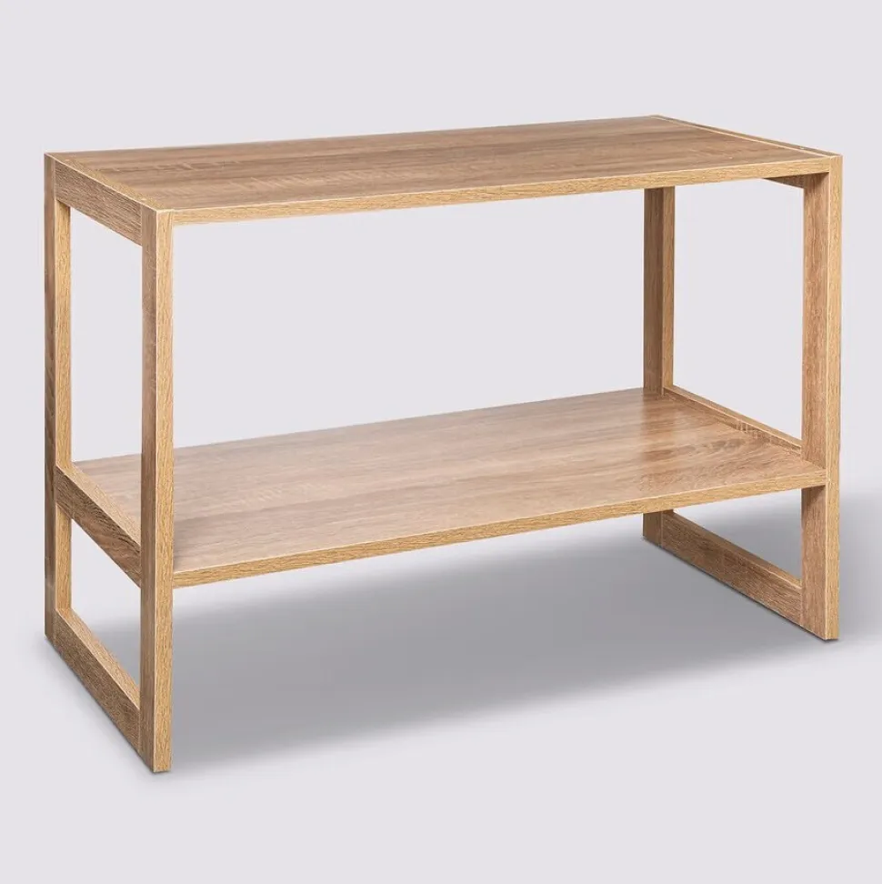 Stojąca półka bambusowa M | 5five Simply Smart Zorganizuj się dzięki tej naturalnej bambusowej półce stojącej od 5five Simply Smart. Dzięki dwóm półkom i podstawie o wysokości 16,5 cm jest praktyczna i będzie idealna do każdej przestrzeni. Przedstawiamy naszą niesamowitą półkę bambusową! Wykorzystując odporną na użytkowanie płytę wiórową, jest to idealny dodatek do przechowywania, który urozmaici każdy dom. Konstrukcja z dwiema półkami ma podstawę o wysokości 16,5 cm, dzięki czemu mebel jest zarówno solidny, jak i stylowy. A ponieważ półka jest wykonana z płyty wiórowej, możesz być pewien, że przetrwa próbę czasu i utrzyma wszystkie twoje drobiazgi. Dzięki klasycznemu, naturalnemu odcieniowi, półka z pewnością wpasuje się w istniejący wystrój, bez względu na kolorystykę. Więc nie wahaj się – bądź kreatywny z przechowywaniem, umieszczając naszą bambusową półkę w swoim mieszkaniu! O tym warto pamiętać! Stylowy i nowoczesny design pasujący do każdego pomieszczenia w domu Solidna konstrukcja z płyty wiórowej zapewniająca dodatkową trwałość i wytrzymałość Wszechstronna konstrukcja z dwiema półkami, idealna do eksponowania książek, roślin i nie tylko