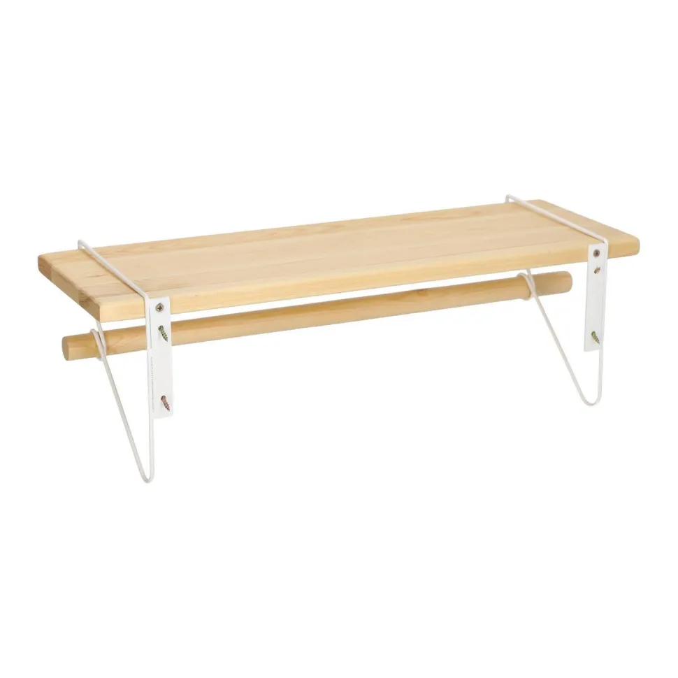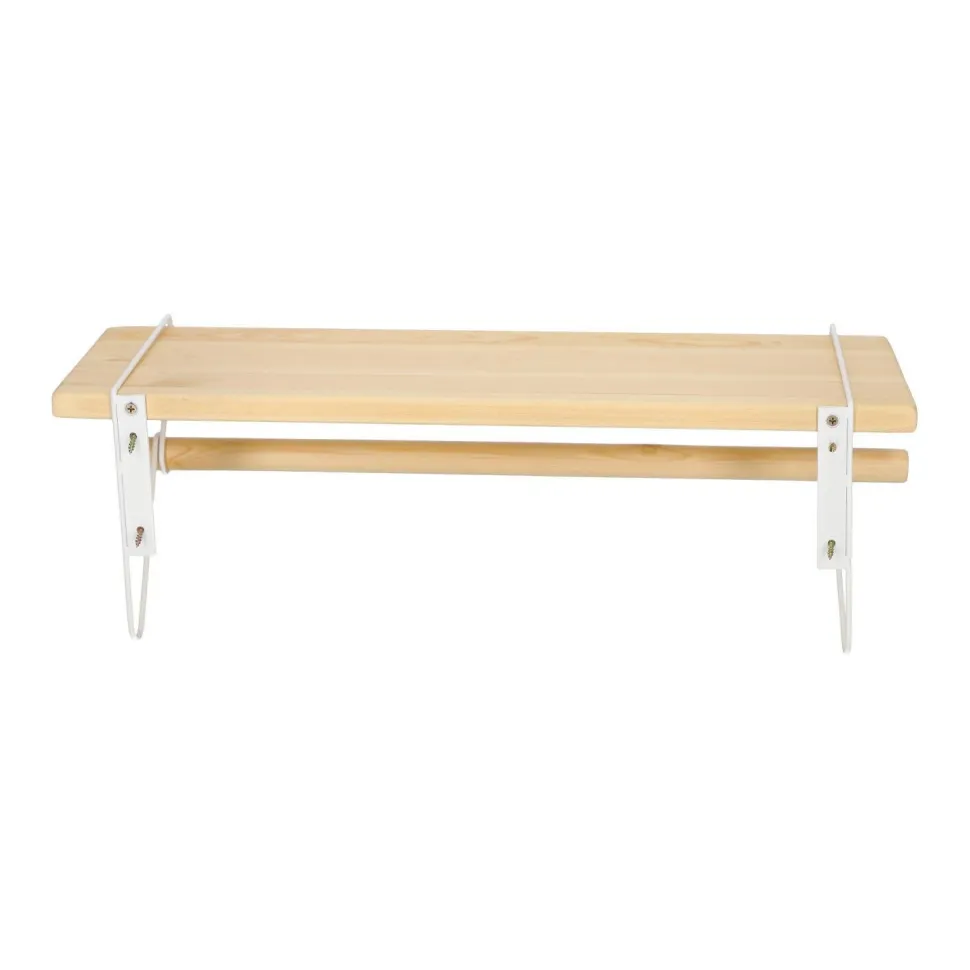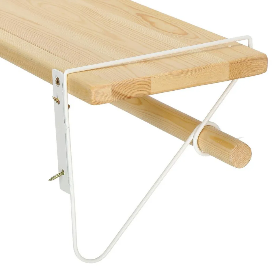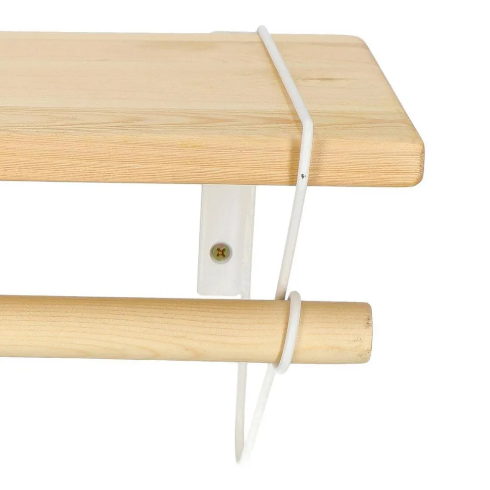 Drewniana półka o białych metalowych wspornikach to idealny wieszak do jasnego wnętrza w stylu skandynawskim. Półka Bish została wykonana z naturalnego drewna połączonego z białymi elementami. Półka posiada dodatkowy drewniany drążek, na którym możemy wieszać wieszaki z kurtkami. Półka sprawdzi się w niewielkim przedpokoju. Wymiary opakowania: 6x17x63 cm