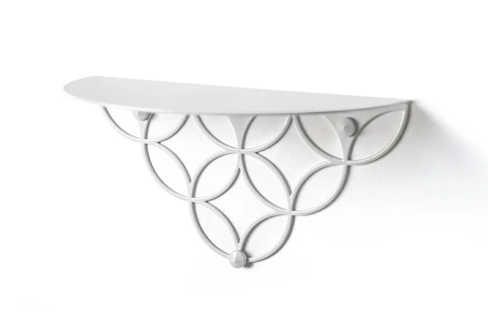 Całość, nieprzemijalność, nieskończoność. Wieszaki i półki z serii Holo to hołd dla koła – najprostszej i zarazem najbardziej złożonej figury geometrycznej. Produkty z tej serii są ponadczasową dekoracja każdej przestrzeni. Wycinany laserowo, stalowy, malowany proszkowo. Waga: 0,6kg