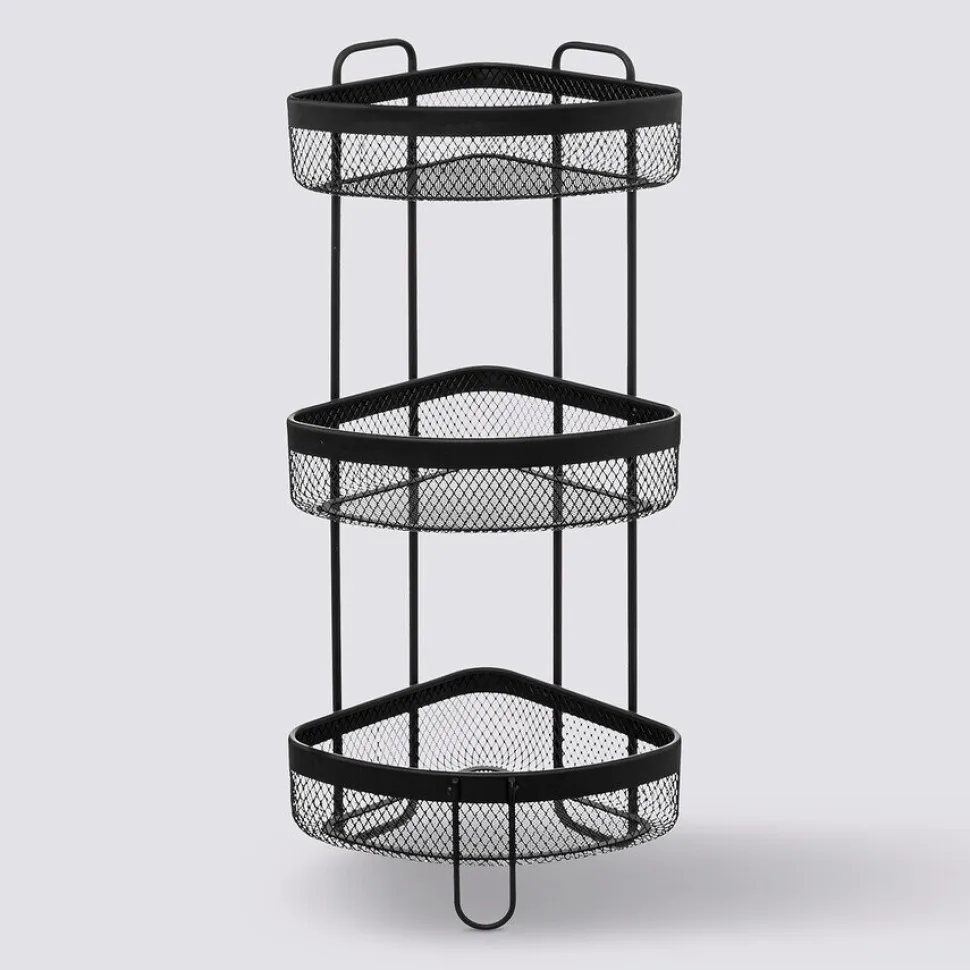 Półka Mayaj potrójna narożna czarna to niezastąpione rozwiązanie dla osób, które pragną zachować porządek w swoim domu, jednocześnie dodając elegancji i stylu do wnętrza. Wykonana w całości z metalu lakierowanego proszkowo na czarno, ta trwała i solidna półka jest idealna do przechowywania różnych drobiazgów. Dzięki koszykom z siatki, które są doskonale umieszczone na półce, możesz swobodnie przechowywać kosmetyki, przybory piśmiennicze czy nawet przyprawy w kuchni.