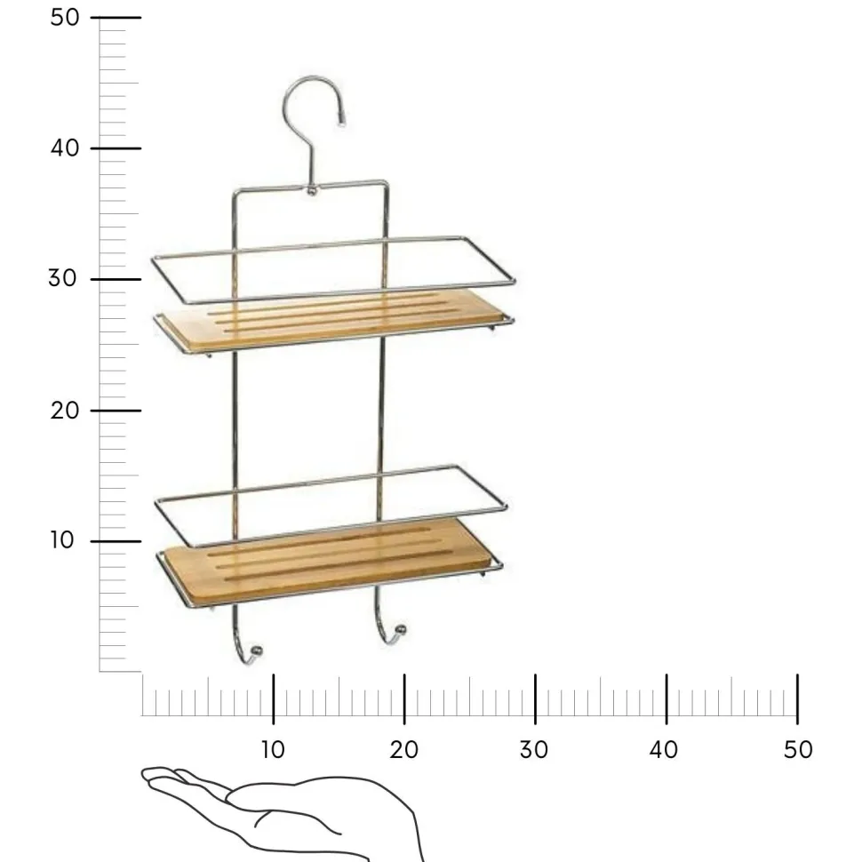 Zadbaj o porządek w swojej łazience z pomocą półki pod prysznic Venterra. Dwa poziomy i dwa haczyki oferują mnóstwo miejsca do przechowywania wszystkich Twoich niezbędnych kosmetyków i akcesoriów kąpielowych. Wykonana z trwałego metalu i stylowego bambusa, ta półka nie tylko jest praktyczna, ale także dodaje naturalnego uroku Twojej łazience.