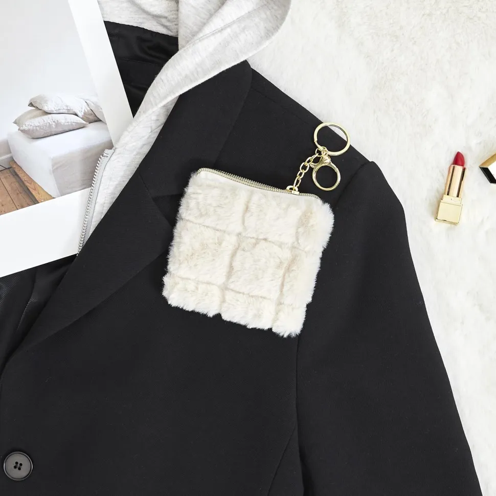 - Portfelik futrzany kremowy to połączenie elegancji i praktyczności.