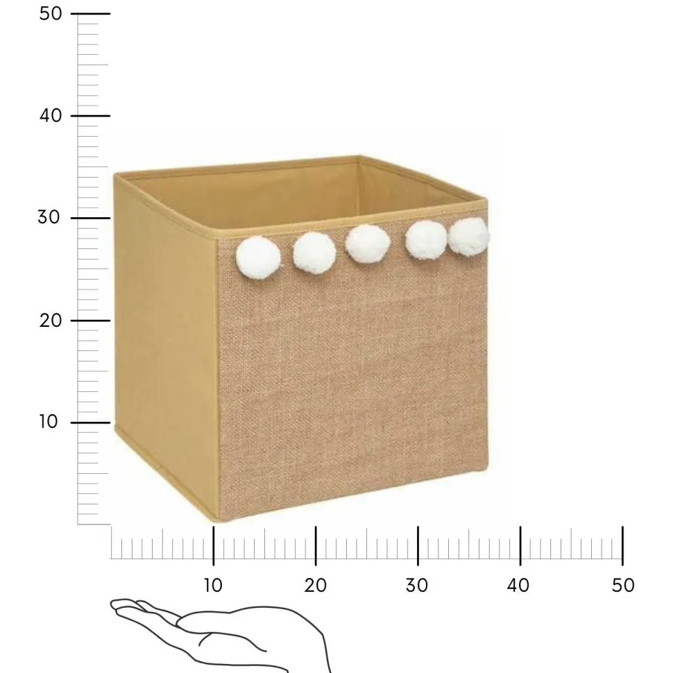 Pudełko do przechowywania to idealny pojemnik do zorganizowania naszej przestrzeni. Mierząc 29x29x29 cm produkt ma kształt sześcianu i pasuje do wielu zwykłych regałów. Jutowy materiał pudełka jest uniwersalny, sprawdzi się we wnętrzu boho. A dodatkowo pomoże Ci zorganizować wiele różnych przedmiotów.
