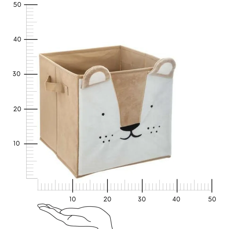 Pudełko do przechowywania to idealny pojemnik do zorganizowania przestrzeni w pokoju dziecięcym. Mierząc 30x29x29 cm produkt ma kształt sześcianu i pasuje do wielu zwykłych regałów. Pudełko to tkanina w kolorze brązowym z motywem lwa, który z pewnością przyciągnie wzrok twojej pociechy. Pojemnik pozwoli Ci i dziecku uporządkować gry, zabawki i pluszaki w uroczym stylu.