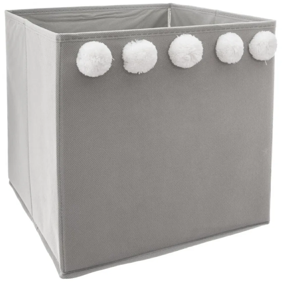 Pudełko z białymi pomponami: idealne do organizacji przestrzeni dziecięcej