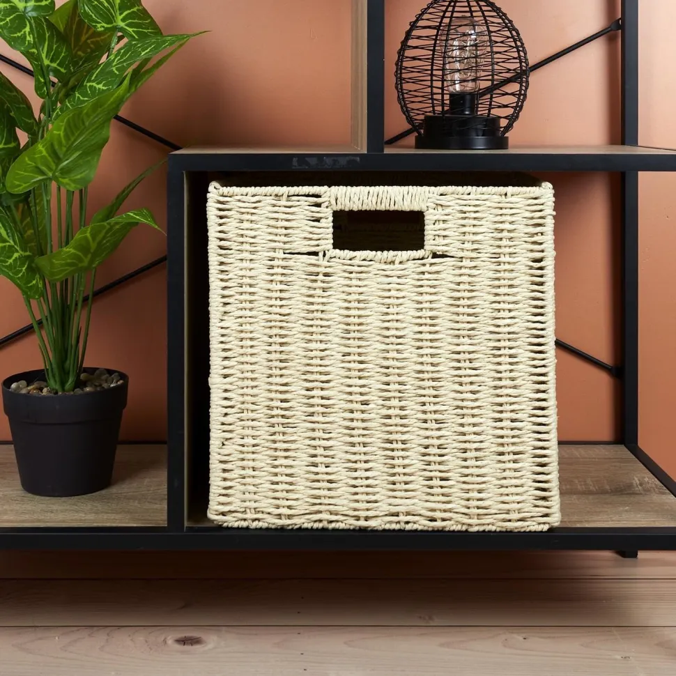 Pudełko/kosz do regału – 30x30x30 cm | Intesi Zorganizuj się dzięki idealnemu rozwiązaniu do przechowywania! Pudełko o wymiarach 30x30x30 cm to świetny sposób na utrzymanie porządku na regale. Wykonany z plecionego sznurka papierowego, posiada dwa wygodne uchwyty po bokach ułatwiające przenoszenie i regulację. Przechowuj książki, zabawki, ubrania lub inne przedmioty w tym wytrzymałym koszu – z pewnością będzie idealnie pasował do większości regałów. Przedstawiamy idealne rozwiązanie do organizacji domu – praktyczny, niezawodny kosz do regału! Niezależnie od tego, czy chcesz przechowywać książki, zabawki, ubrania czy inne małe przedmioty, te pudełko o wymiarach 30x30x30 cm spełni swoje zadanie. Wykonane z plecionego sznurka papierowego dla trwałej wytrzymałości, posiada również dwa uchwyty po każdej stronie dla łatwego przenoszenia. Ponadto idealnie pasuje do standardowych regałów, pozwalając maksymalnie wykorzystać przestrzeń i zawsze przechowywać swoje rzeczy w uporządkowany, łatwo dostępny sposób. Przestań pozwalać bałaganowi przejąć kontrolę i chwyć ten koszyk do regału, aby uzyskać schludne i wydajne rozwiązanie. O tym warto pamiętać! Solidna konstrukcja zapewniająca trwałą ochronę przedmiotów Dwa wygodne uchwyty ułatwiające przenoszenie Idealnie pasuje do większości standardowych regałów Wymiary 30x30x30 cm pozwalają na efektywne i zorganizowane przechowywanie wszystkich rzeczy