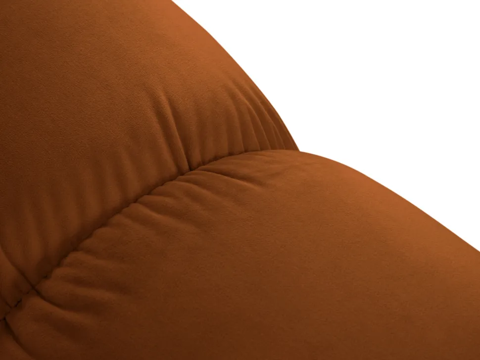 - Elegancka pufa Bellis Terracotta Velvet wykonana z luksusowej, aksamitnej tkaniny obiciowej.