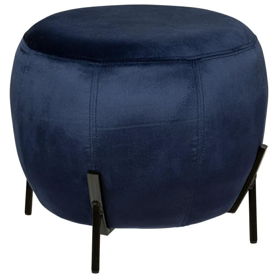 Granatowa pufa to wyjątkowy element, który doda elegancji i wyrafinowania do twojego wnętrza. Dzięki okrągłemu kształtowi i metalowej podstawie, pufa ta jest idealna jako podnóżek lub dodatkowe siedzisko.