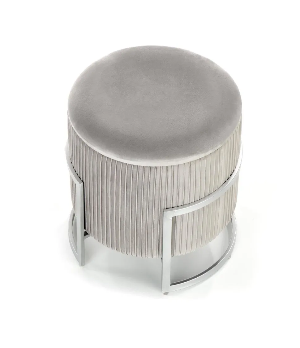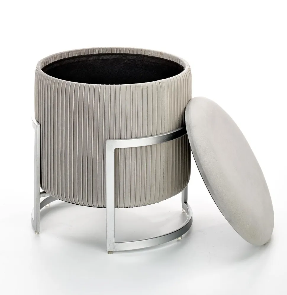 Połączenie funkcjonalności, wygody i designu Pufa Darbi to mebel, który z powodzeniem łączy elegancję z funkcjonalnością, tworząc wyjątkowe wnętrze. Jej kompaktowe wymiary sprawiają, że idealnie pasuje do różnych pomieszczeń, niezależnie od ich rozmiaru.Jednak to nie tylko rozmiar czyni tę pufę tak wyjątkową. Jej siedzisko wykonane z przyjemnej w dotyku tkaniny welwetowej w delikatnym, szarym kolorze dodaje wnętrzu wyrafinowanego charakteru. To mebel, który z pewnością przyciągnie uwagę każdego, kto go zobaczy. Podstawa pufy wykonana jest ze stali malowanej proszkowo w nowoczesnym srebrnym kolorze, co nie tylko gwarantuje trwałość mebla, ale także nadaje mu stylowego wyglądu. Ta kombinacja elegancji i nowoczesności sprawia, że pufa Darbi doskonale wpasowuje się w różne style wnętrzarskie.Ale to nie wszystko! Ma również funkcjonalny schowek wewnątrz, który pozwala na przechowywanie drobnych przedmiotów. Dzięki temu możesz zachować porządek w swoim pomieszczeniu, jednocześnie mając wszystko pod ręką. Pufa Darbi to nie tylko wygodne miejsce do odpoczynku, ale również designerski element dekoracyjny, który podkreśla styl Twojego wnętrza. Może być używana zarówno w salonie, sypialni, jak i pokoju dziecięcym, dodając każdemu z tych pomieszczeń wyjątkowego charakteru.Nie czekaj dłużej i zapewnij sobie mebel, który spełni Twoje oczekiwania! O czym musisz wiedzieć przed zakupem? Dodaje elegancji i wyrafinowanego charakteru wnętrzu Funkcjonalny schowek wewnątrz pufy pomaga zachować porządek Kompaktowy rozmiar pasuje do różnych pomieszczeń