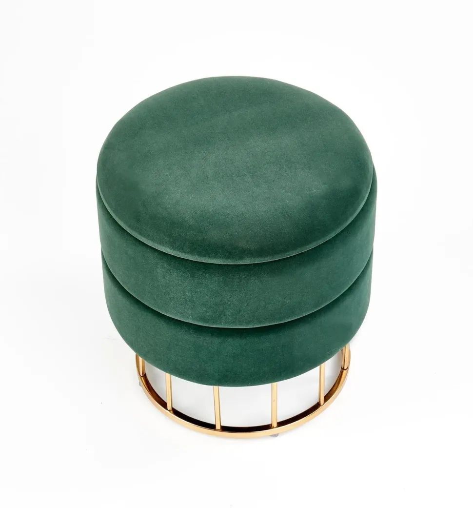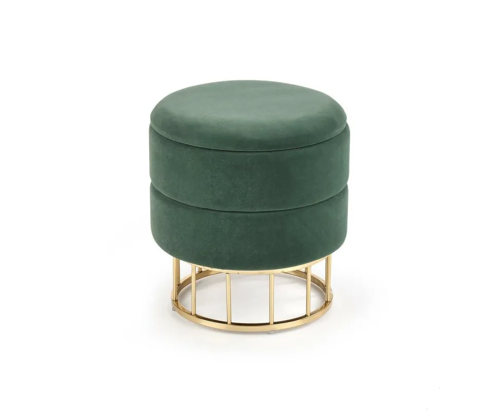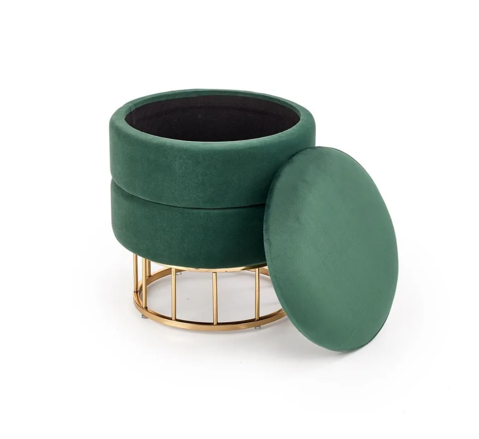 Pufa Godemia ze schowkiem zielona Pufa Godemia ze schowkiem to nie tylko praktyczne siedzisko, ale także elegancki element dekoracyjny, który doda uroku Twojemu wnętrzu. Jej kompaktowe wymiary 37/41 cm sprawiają, że jest idealnym rozwiązaniem zarówno dla przedpokoju, jak i salonu, gdzie może pełnić funkcję zarówno miejsca do siedzenia, jak i dyskretnego schowka na drobne przedmioty. Wykonana z miękkiej i luksusowej tkaniny velvet oraz wsparta na solidnej, stalowej konstrukcji w kolorze złotym, pufa Godemia prezentuje się wyjątkowo elegancko i wprowadza do wnętrza subtelny akcent glamour. Jej ciemnozielony kolor nawiązuje do natury, dodając pomieszczeniu przytulności i harmonii. Funkcjonalny schowek, który znajduje się wewnątrz pufy, to praktyczne rozwiązanie dla osób, które cenią porządek i chcą zachować wewnętrzną organizację. Drobne przedmioty czy akcesoria mogą być łatwo i dyskretnie ukryte, co sprawia, że pufa Godemia jest nie tylko miejscem odpoczynku, ale także doskonałym elementem do utrzymania porządku w Twoim domu. Upewnij się, że to dobry wybór! Pufa Godemia to praktyczne siedzisko oraz elegancki element dekoracyjny. Kompaktowe wymiary pufy sprawiają, że jest idealnym rozwiązaniem zarówno dla przedpokoju, jak i salonu. Tkanina velvet i stalowa konstrukcja nadają pufie wyjątkowy wygląd i subtelny akcent glamour. Funkcjonalny schowek wewnątrz pufy umożliwia przechowywanie drobnych przedmiotów i utrzymanie porządku.