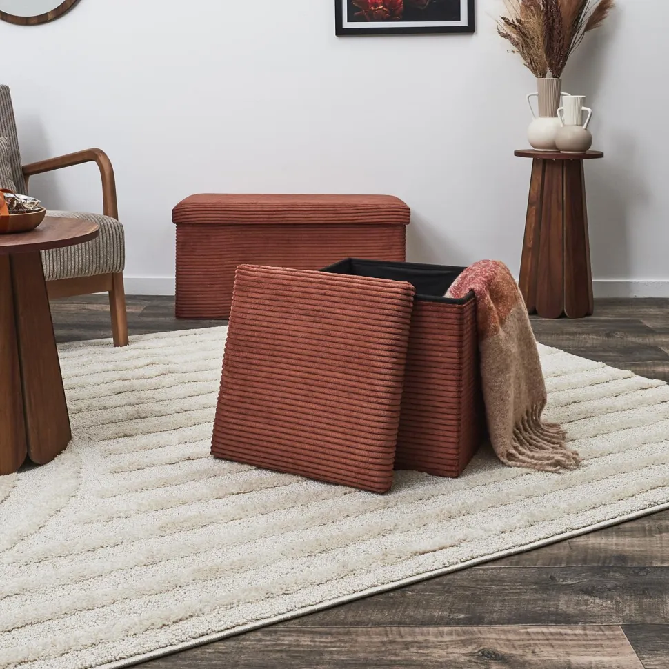 Wyobraź sobie mebel, który nie tylko dodaje elegancji do Twojego wnętrza, ale także pomaga utrzymać porządek. Pufa Intesi Vels Scott teracotta składana jest dokładnie taka. Jest to elegancka, składana pufa, która jest zarówno praktyczna, jak i stylowa. Pokryta jest miękką, sztruksową tkaniną, która jest przyjemna dla oka i skóry. Gdy nie jest używana, można ją łatwo złożyć, co pozwala zaoszczędzić miejsce.