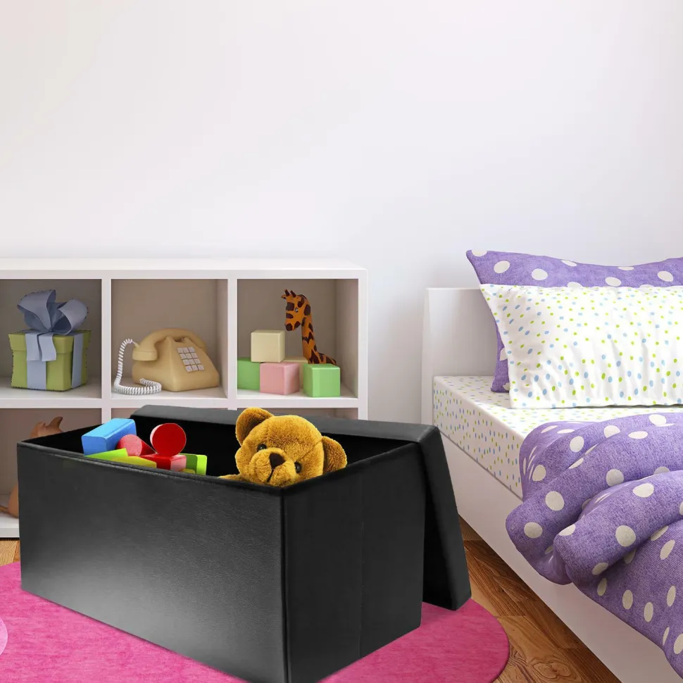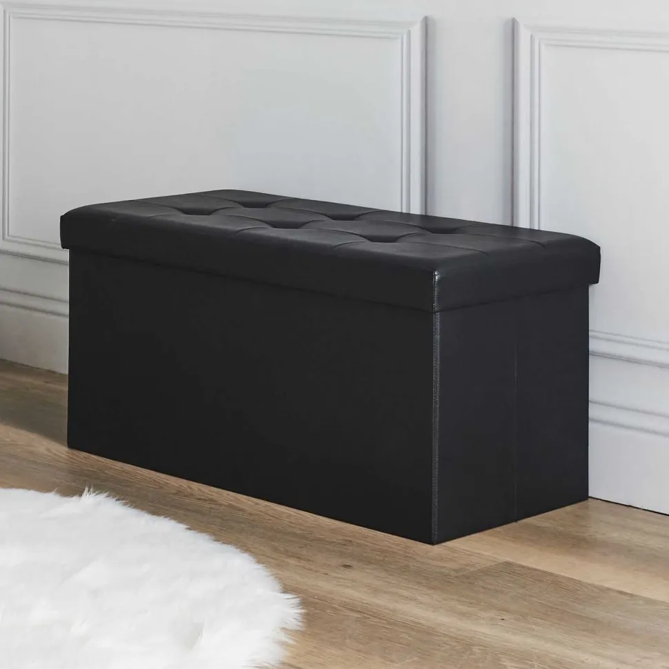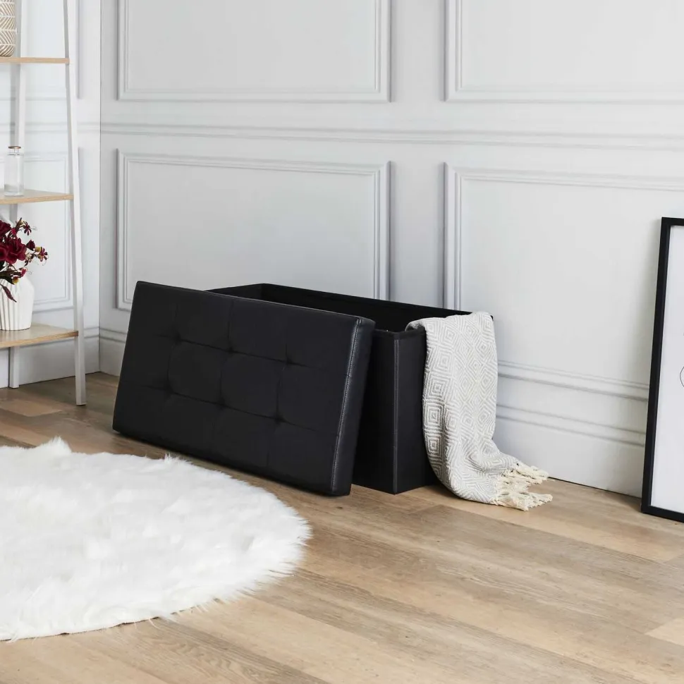Pufa Intesi Velse to kolejny model bardzo modnej kolekcji składanych siedzisk. Ten nietuzinkowy projekt to pełnoprawna pufa, która doskonale sprawdzi się w roli dodatkowego siedziska w kąciku kawowym czy w przedpokoju, gdzie pomoże Ci wygodnie włożyć buty. Gruba pianka wysokoelastyczna, którą obito jej górną część, dba o wygodę użytkownika, zapewniając mu miękką i elastyczną powierzchnię. Element jest nie tylko wygodny, ale także wyśmienicie wygląda, co jest zasługą gustownych przeszyć i pikowania. Pufa będzie idealnym schowkiem do pokoju dziecka, dodatkowym miejscem do przechowywania w pokoju młodzieżowym. To nie tylko pojemnik na ubrania, zabawki czy poduszki. Pufa jest też wygodnym siedziskiem. Maksymalne obciążenie siedziska pufy to aż 110kg.Pufa została zrobiona z poliestru oraz eko skóry w kolorze czarnym.