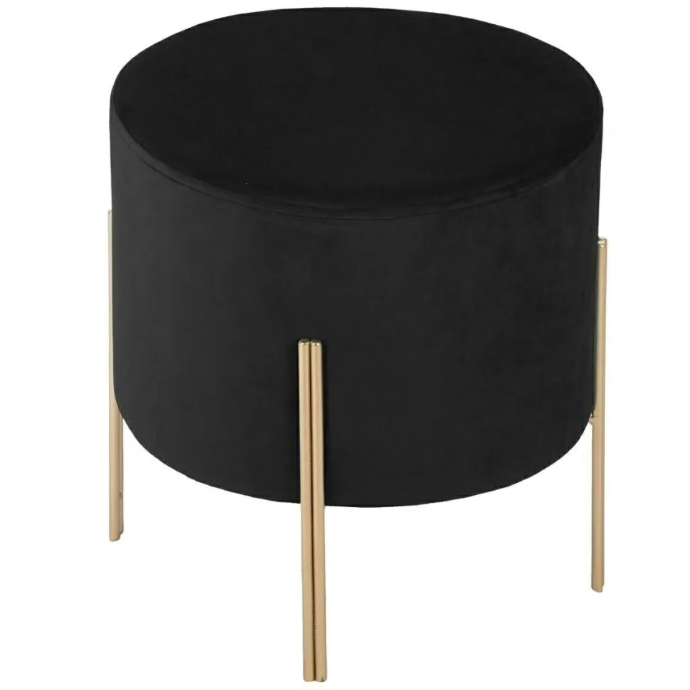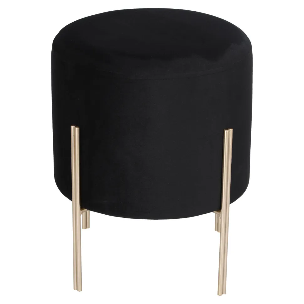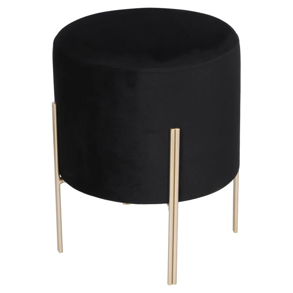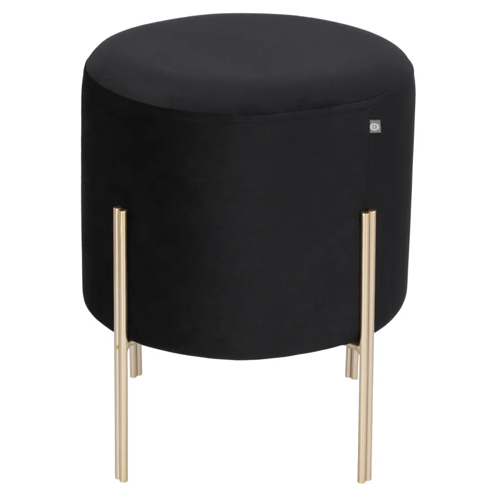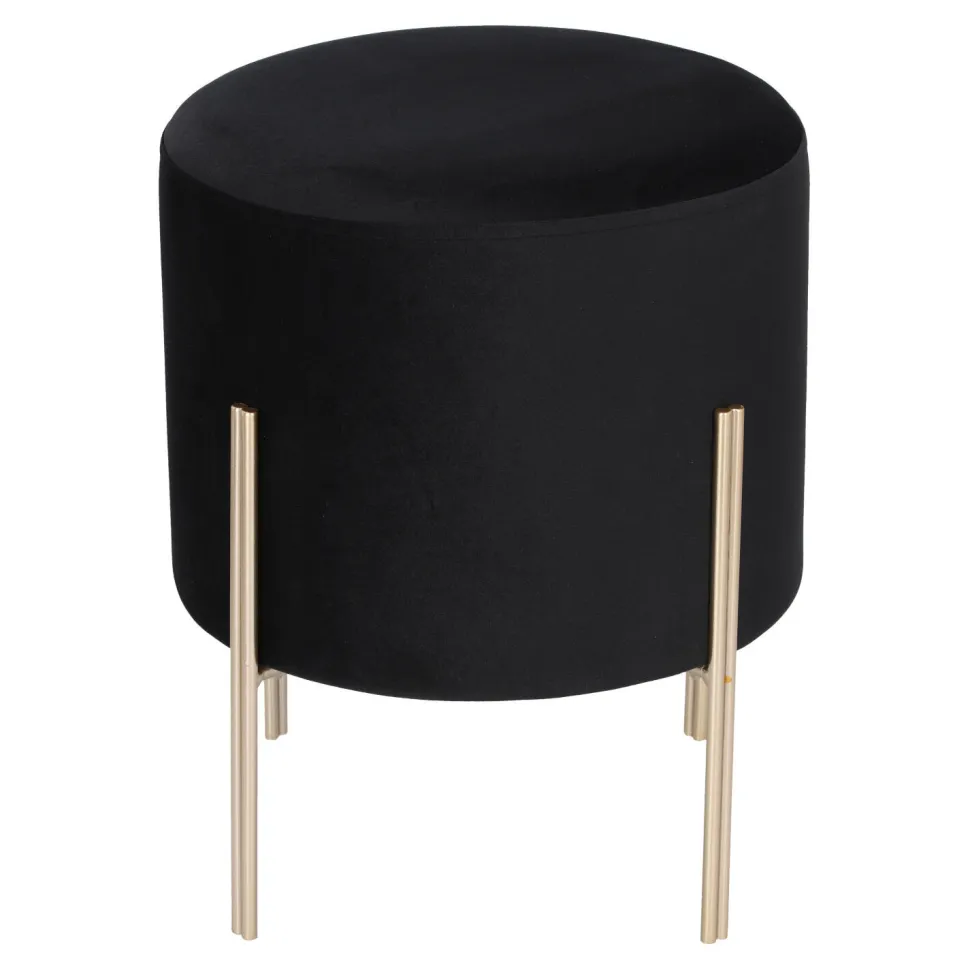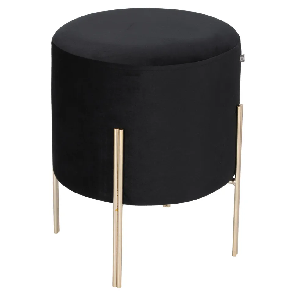 Okrągła aksamitna pufa z bardzo jasnymi złotymi czterema nogami sprawdzi się we wnętrzu, w którym liczy się dbałość o szczegóły. Ta czarna pufa to doskonały dodatek do nowoczesnych i tradycyjnych wnętrz. Dzięki swojemu atrakcyjnemu designowi będzie idealna do czytania, odpoczynku lub rozmowy z przyjaciółmi. Kup nasz produkt marki Atmosphera już dziś i ciesz się jego luksusowym wyglądem w swoim salonie! Przygotuj się na stylową metamorfozę, o której zawsze marzyłeś!