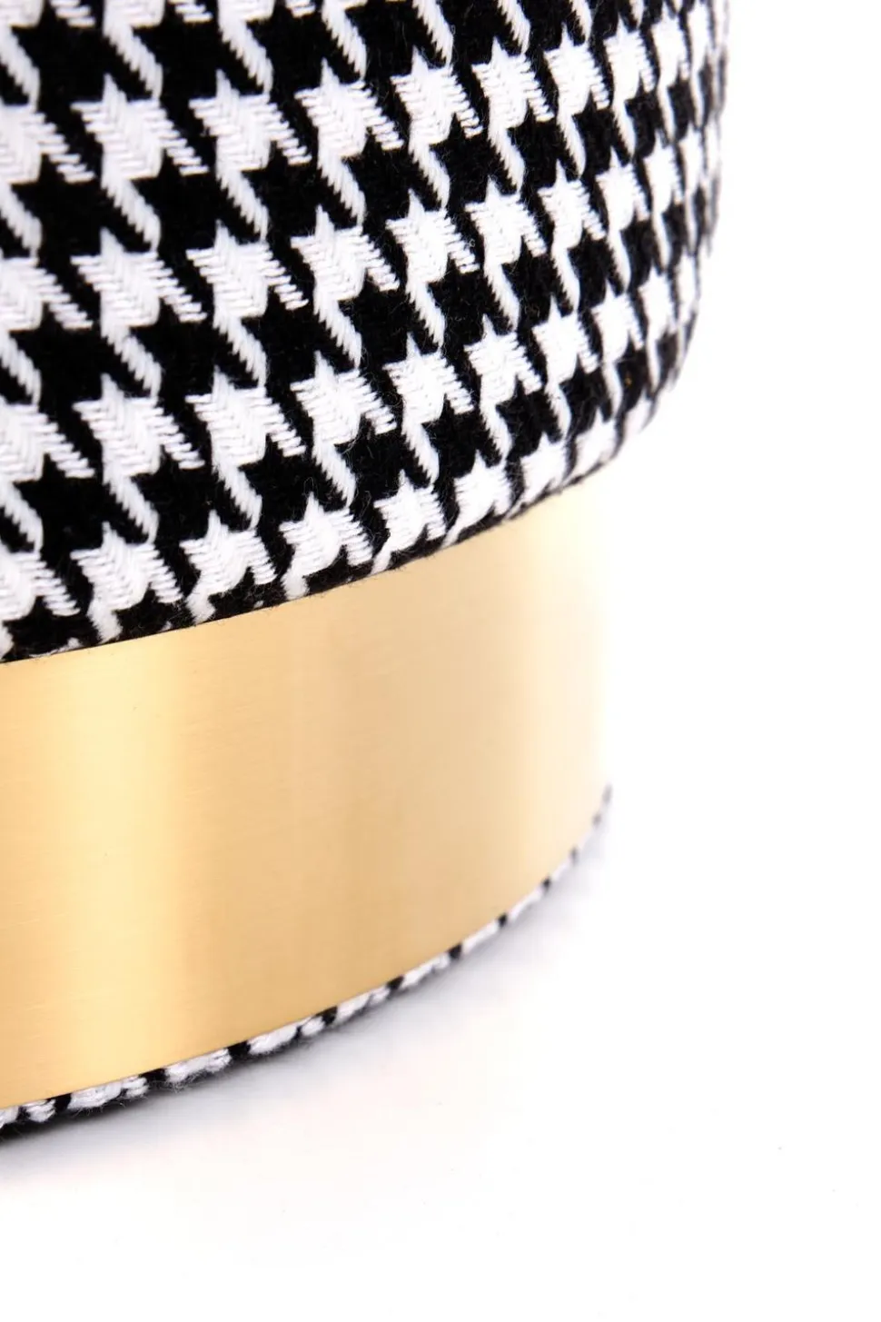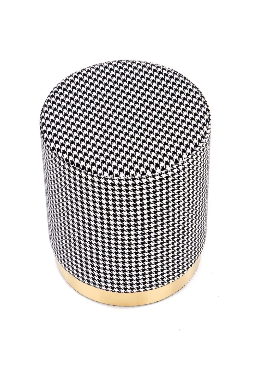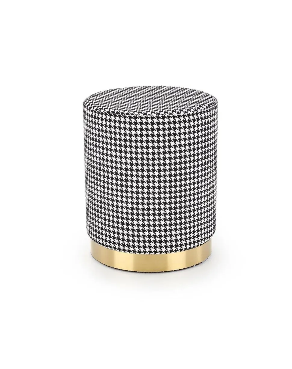 Uzyskaj nowoczesny wygląd glamour dzięki tapicerowanej pufie Ranu. Współczesny mebel ma metalową ramę w kolorze złotym i czarno-białą tapicerkę z tkaniny dla wyrafinowanego akcentu. Dodaj stylu do każdego pomieszczenia dzięki tej stylowej i wygodnej pufie od Intesi.