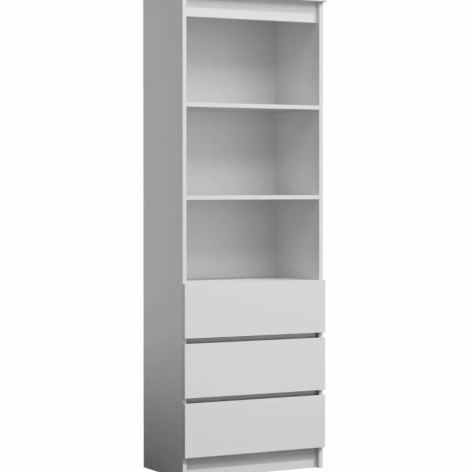 Z trzema półkami i trzema szufladami, Regał Elsie oferuje mnóstwo miejsca do przechowywania ubrań, akcesoriów czy innych drobiazgów, co czyni go doskonałym wyborem do garderoby. Płyta wiórowa laminowana o grubości 16 mm gwarantuje solidność i trwałość. Jego kompaktowe wymiary – 35 cm głębokości, 60 cm szerokości i 180 cm wysokości – pozwalają zaaranżować przestrzeń efektywnie nawet w mniejszych pomieszczeniach, zachowując jednocześnie funkcjonalność i estetykę. Styl skandynawski, charakteryzujący się minimalizmem, naturalnymi materiałami i jasnymi kolorami, sprawia, że Regał Elsie doskonale wkomponuje się w każde wnętrze, dodając mu lekkości i świeżości. Jeśli szukasz regału, który nie tylko uporządkuje Twoją przestrzeń, ale także doda jej uroku w duchu skandynawskiego designu, Regał Elsie Biały będzie idealnym wyborem.