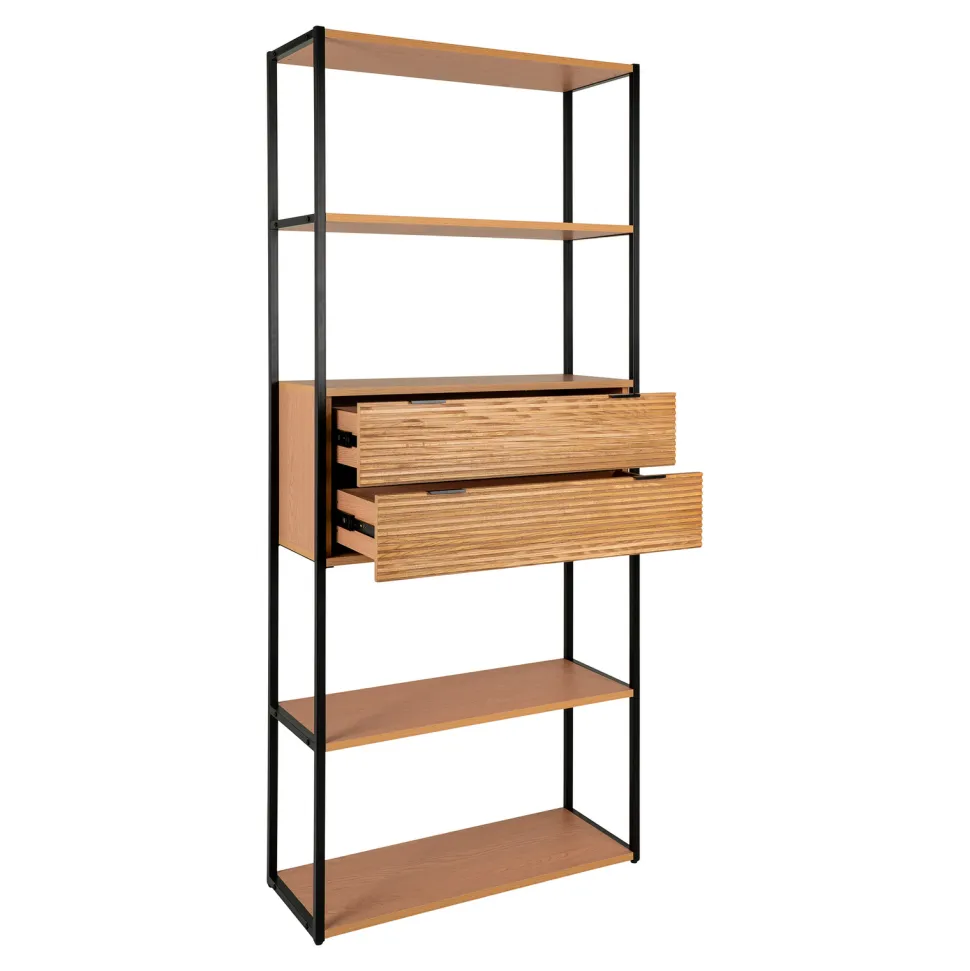 Regał Minato to produkt, który łączy w sobie nowoczesny design z funkcjonalnością. Wykonany z melaminy imitującej dąb, stalowej ramy w kolorze czarnym oraz płyty MDF, jest nie tylko estetycznie wykonany, ale również solidny i wytrzymały. Ten regał to doskonałe rozwiązanie dla osób ceniących sobie praktyczność i styl. Dzięki swoim wymiarom (szerokość: 84,5 cm, wysokość: 200 cm), Regał Minato pomieści wiele rzeczy, jednocześnie nie zajmując dużo miejsca.