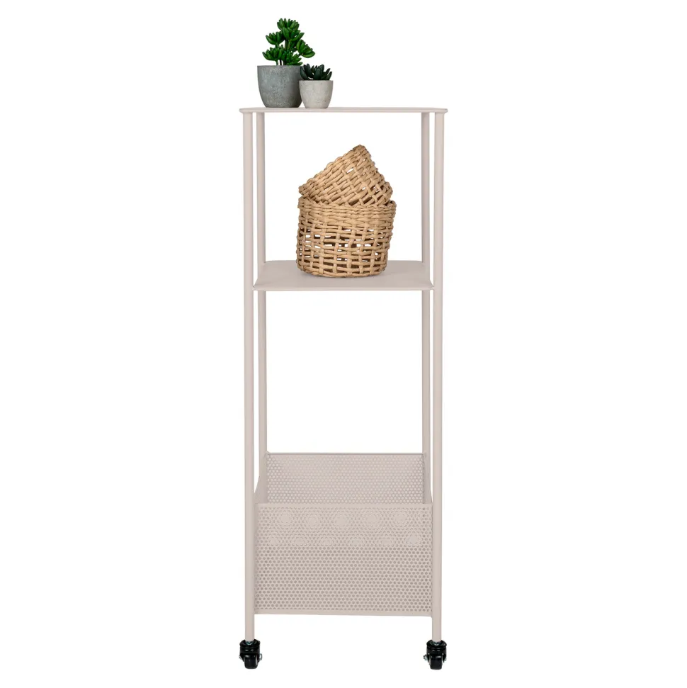 Regał na kółkach Torres beżowy to doskonałe połączenie nowoczesnego designu z praktycznością. Wykonany z wysokiej jakości stali, charakteryzuje się solidnością i trwałością. Jego piaskowy, beżowy kolor dodaje mu elegancji, a stalowa konstrukcja gwarantują stabilność. Dodatkowo, wyposażony jest w kółka, co umożliwia łatwe przemieszczanie go w dowolne miejsce. Wysokość regału wynosi 106 cm, a szerokość 35 cm, dzięki czemu jest kompaktowy, ale jednocześnie oferuje dużo miejsca do przechowywania.