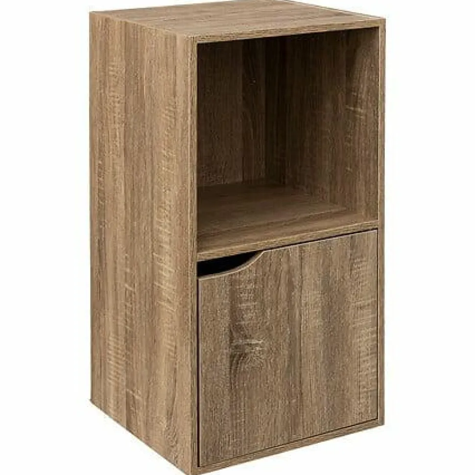 Regał niski Mix n`Modul 2 poziomy to mebel, który łączy w sobie funkcjonalność i styl. Wykonany z wysokiej jakości płyty pilśniowej pokrytej okleiną imitującą naturalny dąb, wprowadzi do Twojego wnętrza odrobinę natury. Dwa poziomy regału pozwalają na praktyczne zagospodarowanie przestrzeni. Szafka zamykana frontem idealnie sprawdzi się do przechowywania drobiazgów, które chcesz ukryć przed wzrokiem gości, natomiast otwarta półka doskonale wyeksponuje Twoje ulubione książki czy dekoracje.