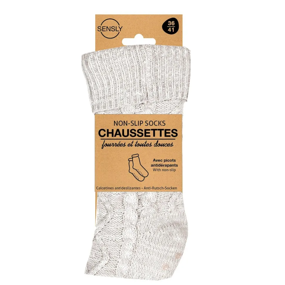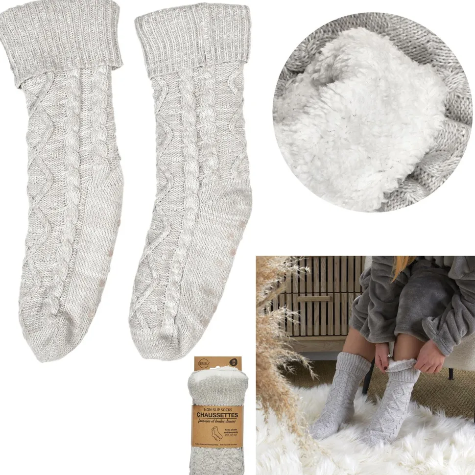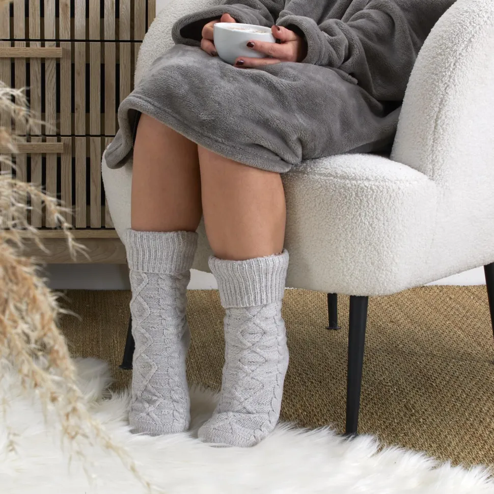 Szare skarpety plecione z ociepleniem:praktyczność i elegancja