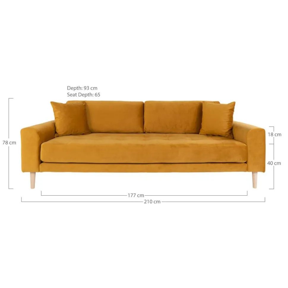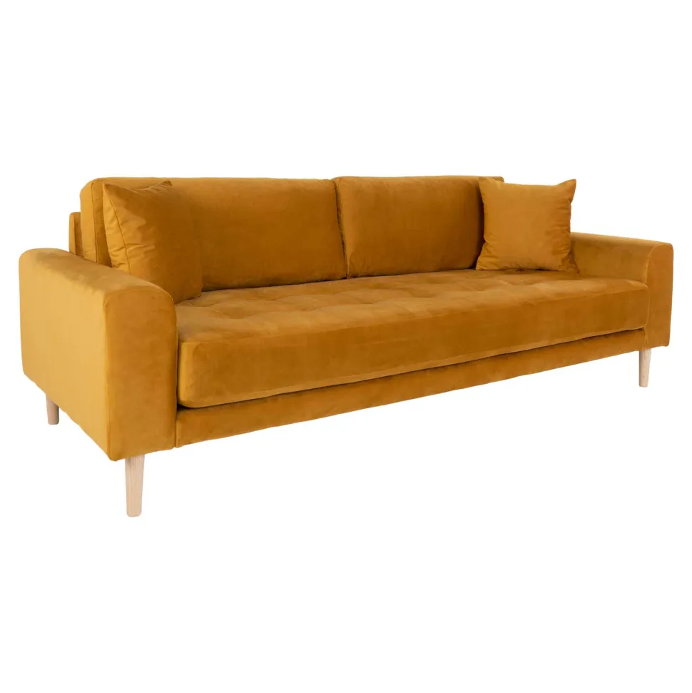 Wyjątkowa Sofa Lido 3 żółta z naturalnymi nogami