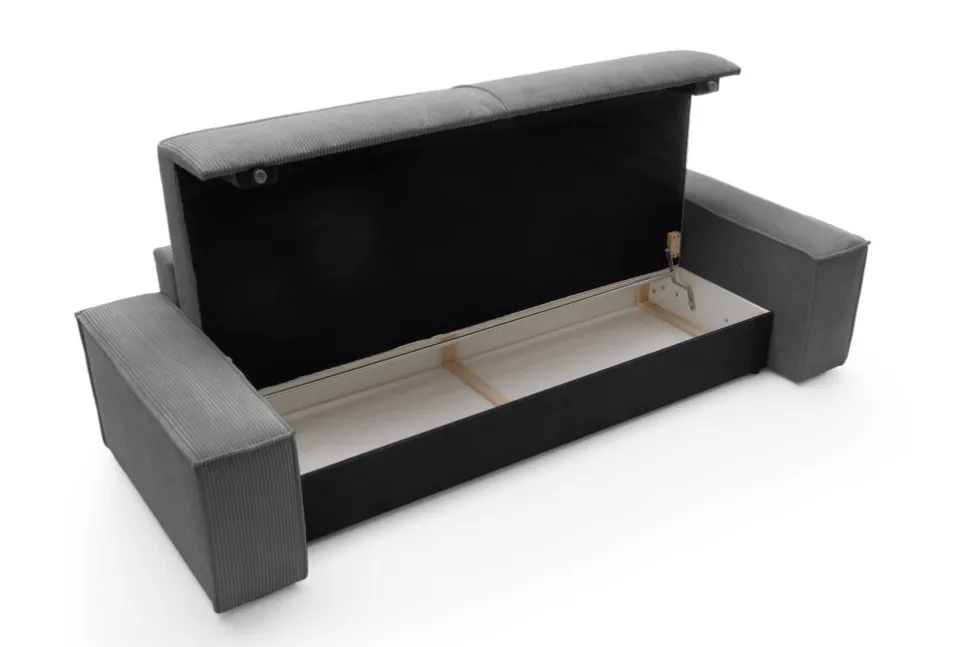 Dzięki możliwości rozkładania do powierzchni spania 200x135cm, sofa stanowi praktyczne rozwiązanie dla osób poszukujących mebla wielofunkcyjnego. Dodatkowy pojemnik na pościel sprawia, że jest idealna do mniejszych przestrzeni, gdzie każdy metr kwadratowy ma znaczenie.