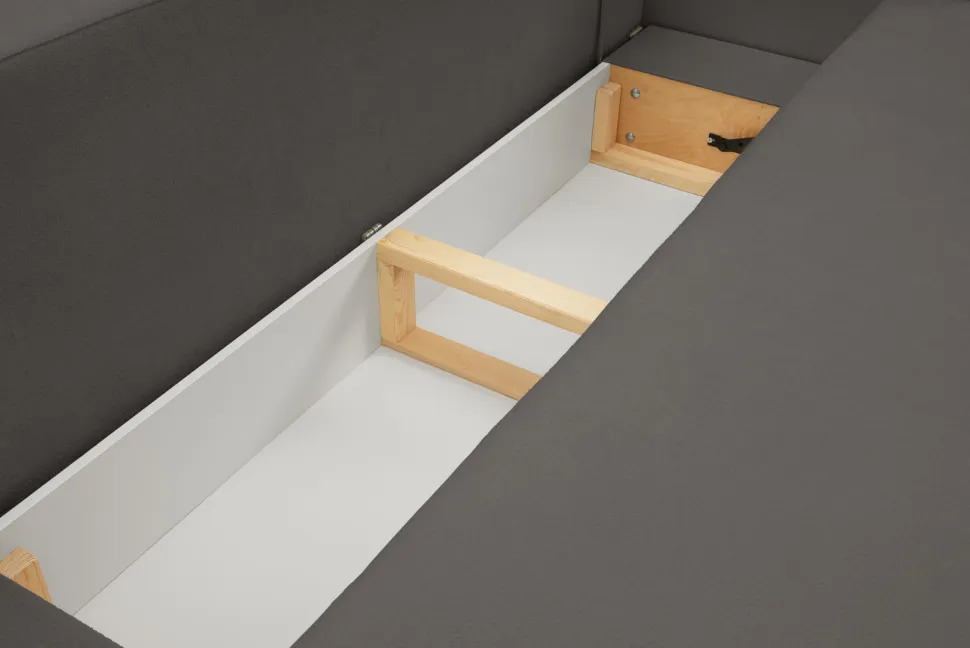 - Mebel jest niezwykle praktyczny – posiada pojemnik na pościel, który pomieści wszystkie niezbędne rzeczy.