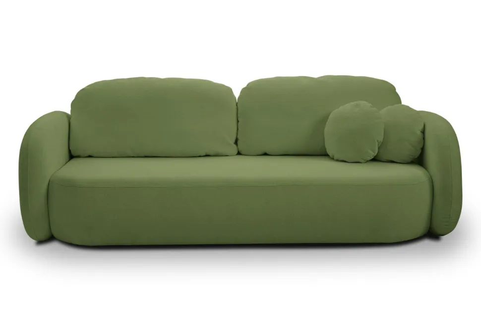 Jeśli szukasz idealnego mebla do Twojego salonu, sypialni czy nawet gabinetu, Sofa Salby z funkcją spania zielona Sicuro 20 jest tym, czego potrzebujesz. Wyjątkowo komfortowa, o zaoblonych poduszkach i podłokietnikach, wprowadzi do Twojego wnętrza niepowtarzalny klimat. Dodatkowo, sofa ta jest wyposażona w dwie małe, okrągłe poduszki, które z pewnością podniosą komfort Twojego wypoczynku, szczególnie podczas poobiedniej drzemki.