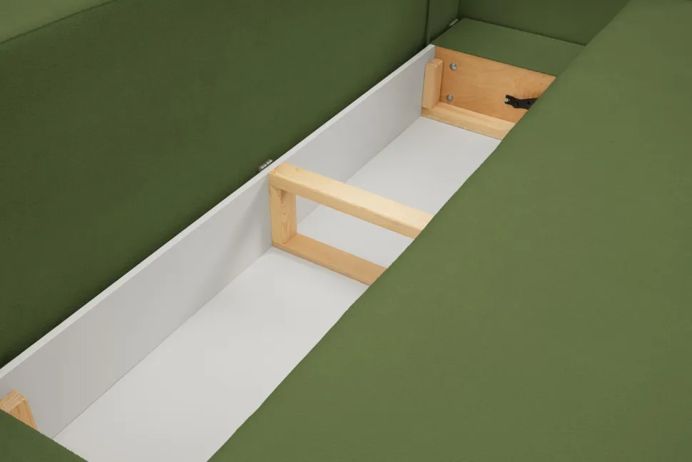 - Wyposażona jest w pojemnik na pościel, co zapewnia dodatkową przestrzeń do przechowywania.