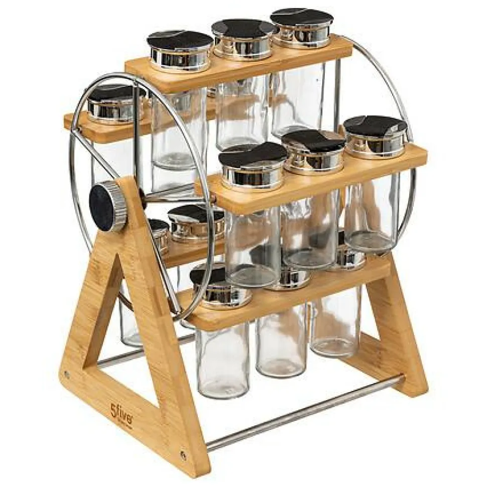 Obrotowy Stojak na przyprawy Bambou z 15 szklanymi słoikami