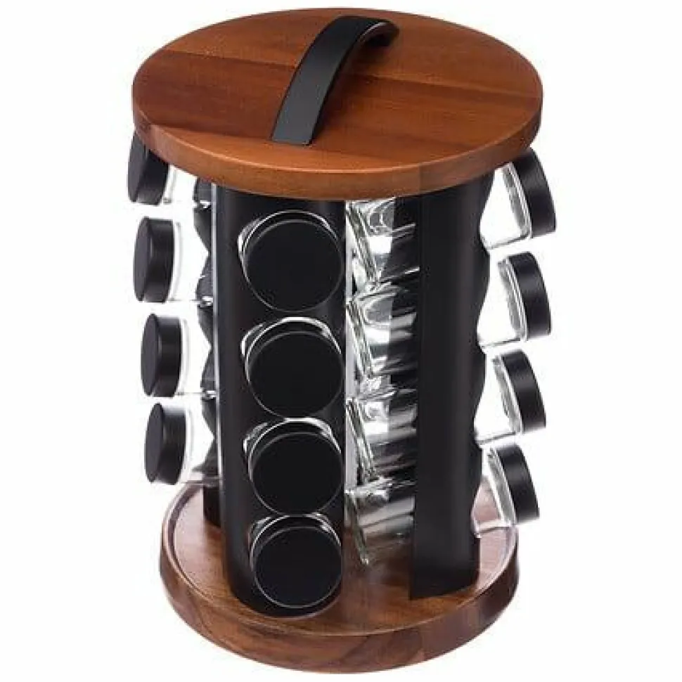 Stojak na przyprawy obrotowy 16 słoiczków, drewno akacjowe – porządek i styl w Twojej kuchni