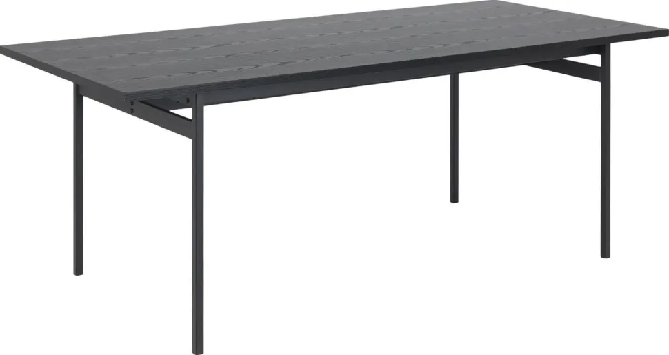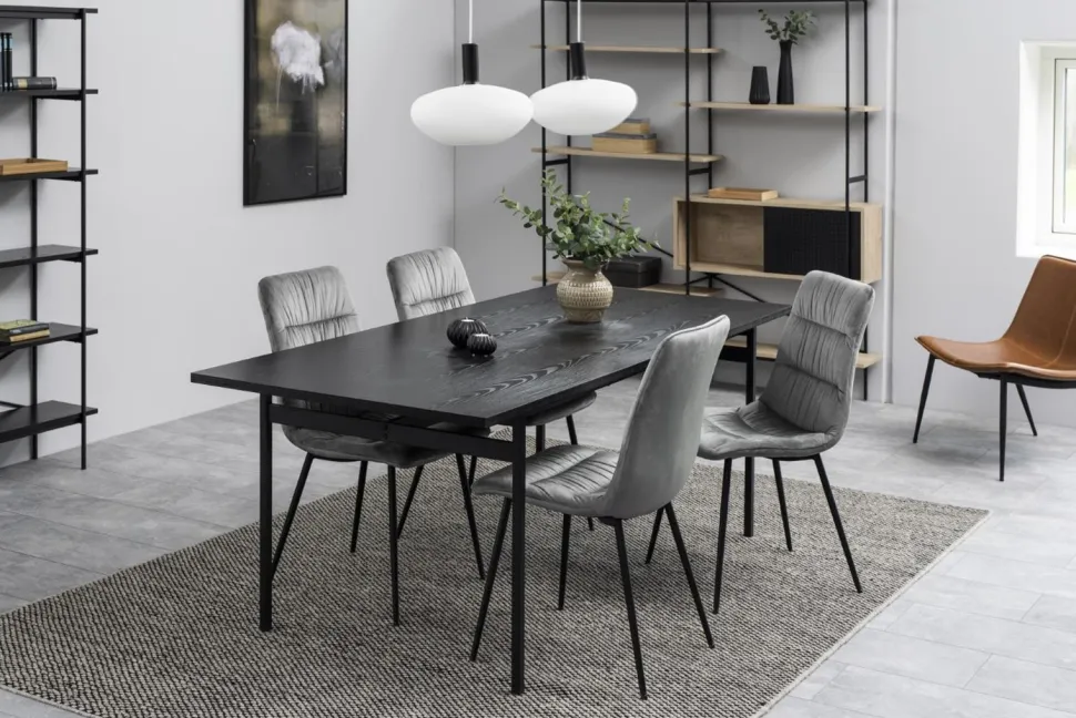 Styl industrialny wciąż jest jednym z najbardziej popularnych aranżacji w ostatnim czasie. Jego surowość, estetyka i ergonomia to cechy, które w połączeniu z niepowtarzalnym wyposażeniem tworzą wyjątkowy klimat, jaki uwielbiamy. Duch fabryki zamknięty w minimalistycznych meblach o uwydatnionej konstrukcji to obowiązkowy element takiej przestrzeni. Czarny nowoczesny STÓŁ ANGUS wraz z całą kolekcją o tej samej nazwie będą świetnym dopełnieniem industrialnego salonu. Jest to wyjątkowo elegancki mebel o subtelnym wzornictwie. Jego ergonomiczna wielkość pozwala pomieścić aż 6 krzeseł, dzięki czemu bez problemu będziesz w stanie zorganizować większe spotkanie. Blat stołu stanowi gruba płyta meblowa laminowana okleiną imitującą drewno jesionu barwione na czarno. Jest to niezwykle wytrzymały materiał, który jest odporny na zabrudzenia i zniszczenia, dzięki czemu przy odpowiedniej pielęgnacji posłuży na lata. Podstawę stanowi natomiast metalowa rama, malowana proszkowo na czarno. Całość sprawia, że mebel wygląda estetycznie, a materiały zapewniają mu nośność aż do 100 kg.