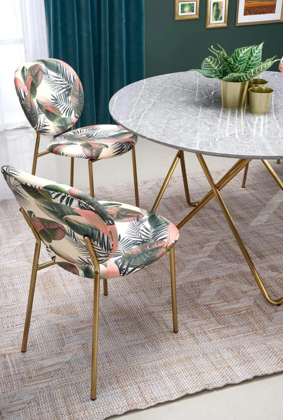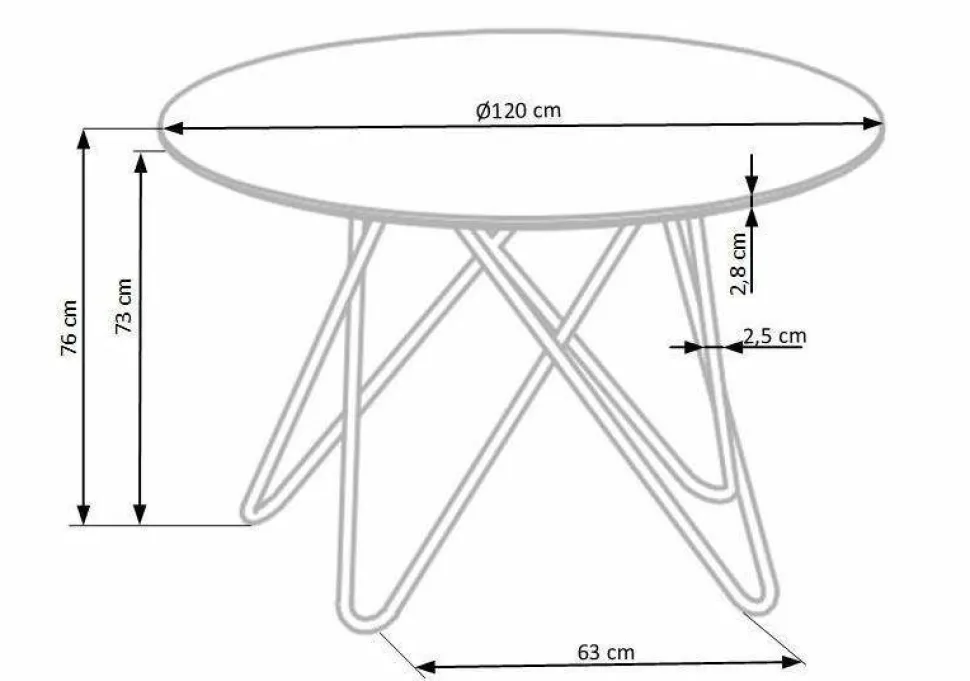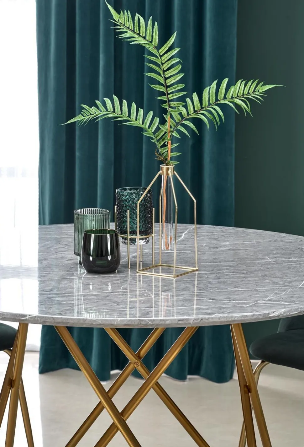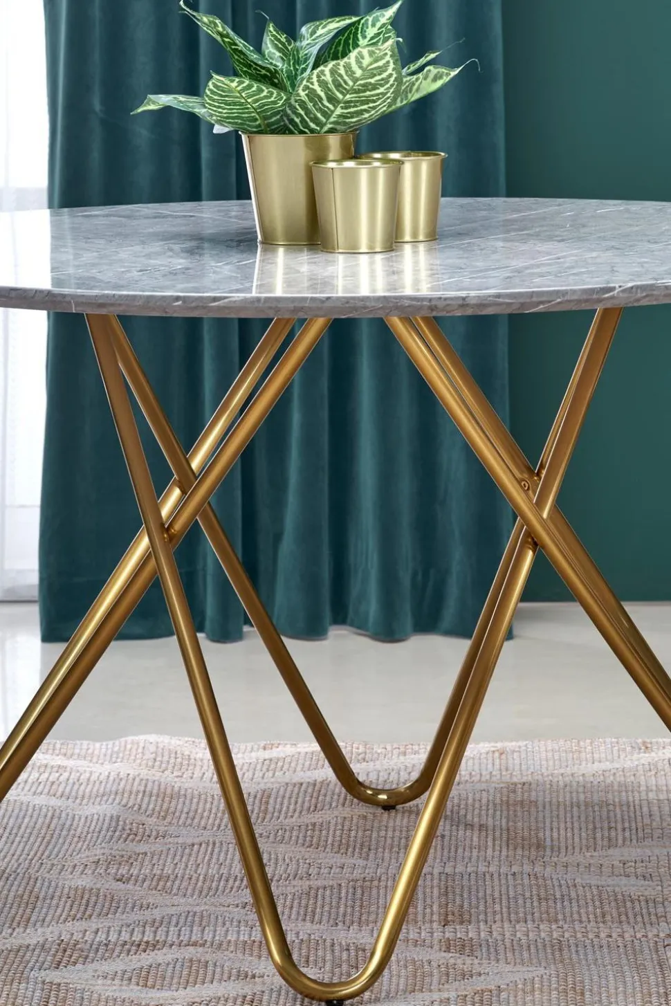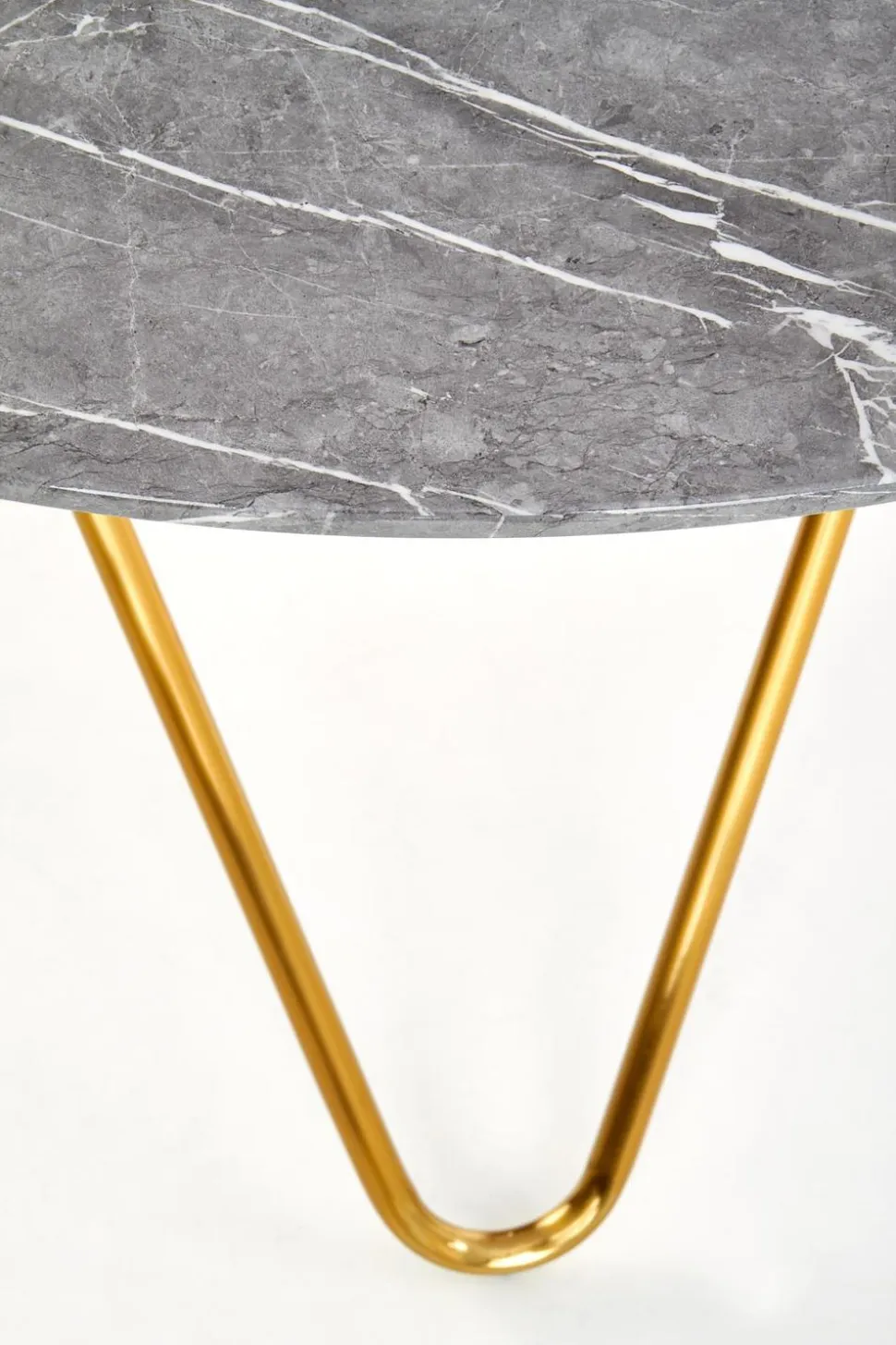 Jego okrągły blat o wymiarach 120/76 cm w kolorze popielatego marmuru jest wystarczająco duży, aby pomieścić 6 osób, co czyni go idealnym wyborem dla rodzinnych obiadów lub spotkań z przyjaciółmi. Nie musisz się martwić o rozkładanie blatu, ponieważ jest on stały i nie wymaga dodatkowego montażu.