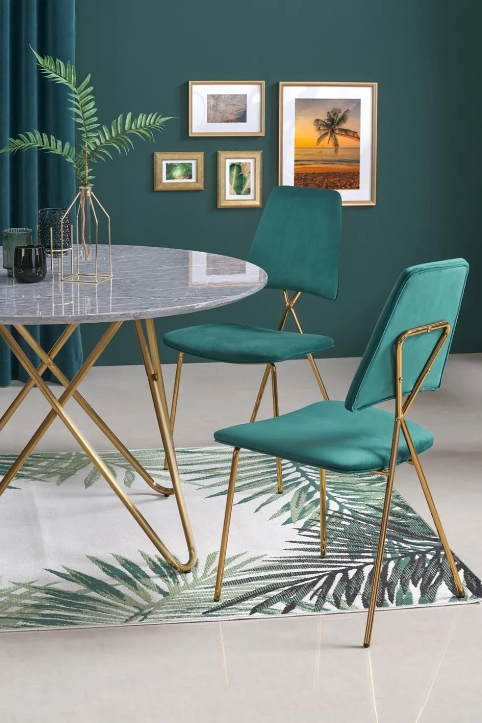 Stół posiada 4 nogi w kolorze złotym, które dodają mu eleganckiego wyglądu i zapewniają stabilność. Możesz mieć pewność, że ten stół będzie doskonale pasował do Twojego wnętrza i doda mu niepowtarzalnego charakteru.
