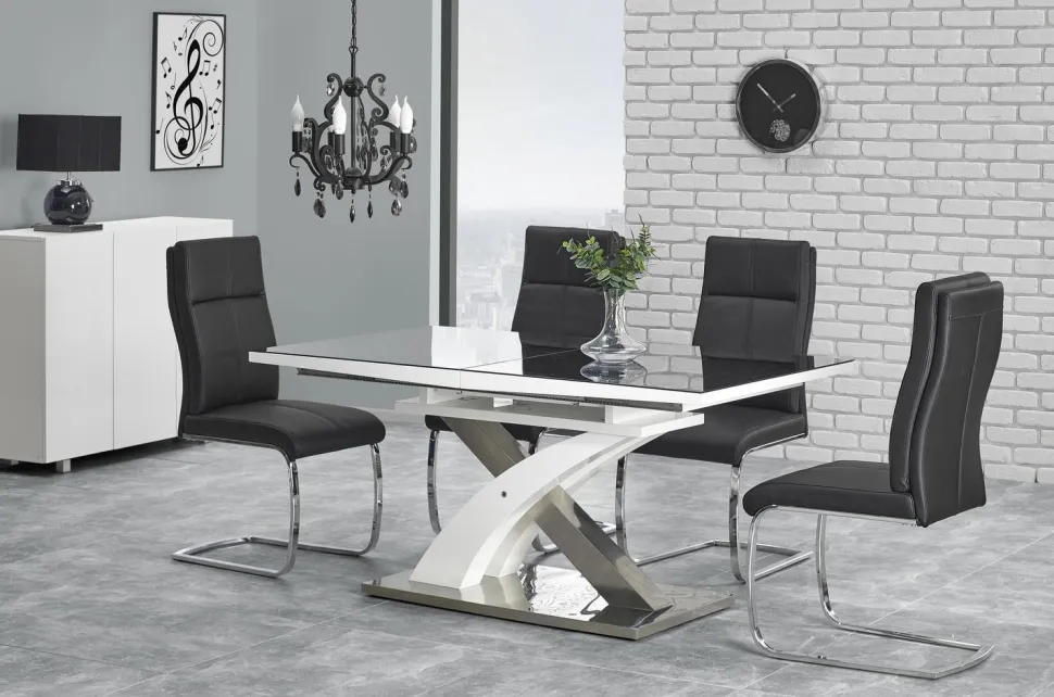 Przedstawiamy stół Doran – innowacyjny projekt, który spełnia oczekiwaniom dzięki eleganckim, nowoczesnym liniom i eleganckiemu blaskowi. Ten 6- lub 8-osobowy stół jest idealny dla osób, które chcą dodać odrobinę wyrafinowania do swojej jadalni. Niezależnie od tego, czy organizujesz przyjęcia, czy spotkania rodzinne, możesz być pewien, że zaimponujesz swoim gościom, gdy tylko zobaczą ten niezwykły mebel! Wykonany z wysokiej jakości materiałów, takich jak szkło, lakierowana płyta MDF i stal nierdzewna, ten rozkładany stół został zaprojektowany z myślą o trwałości.