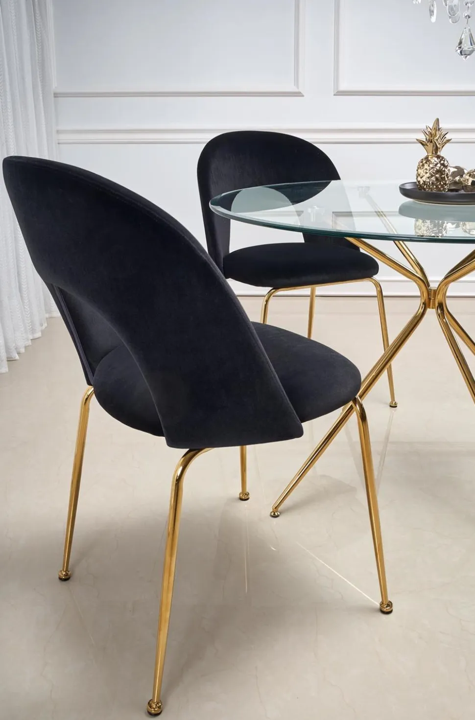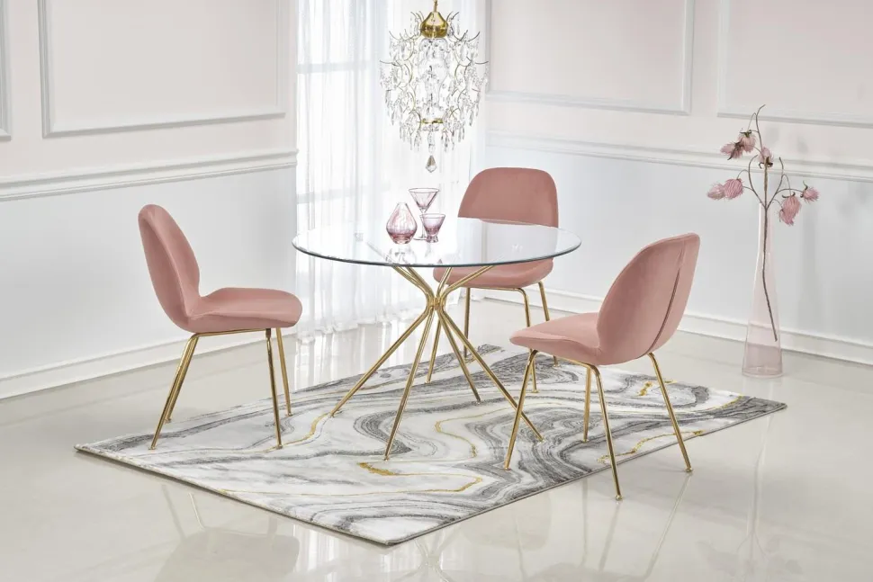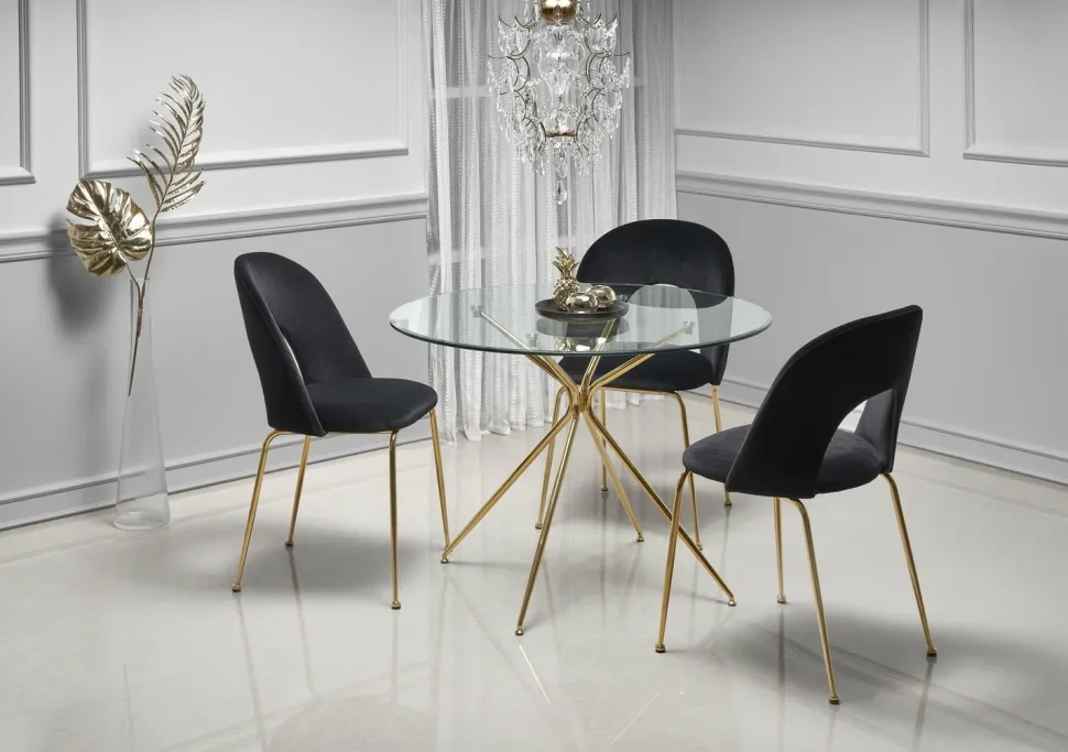 - Stal chromowana i złoty kolor nóg zapewniają trwałość i elegancję stołu