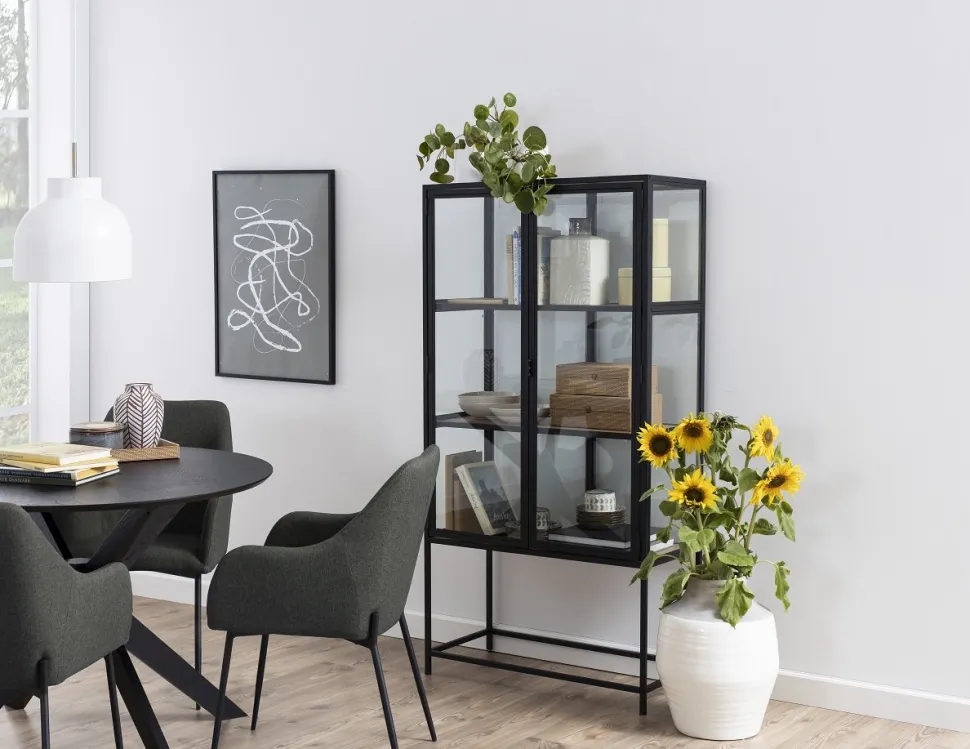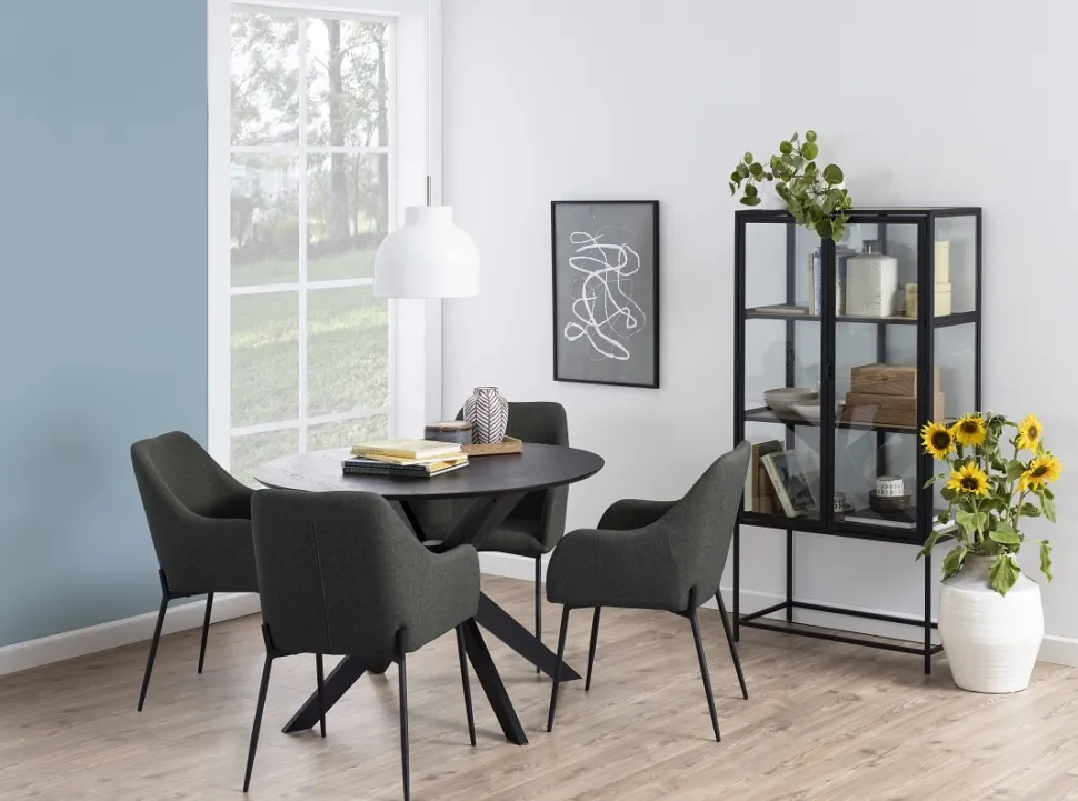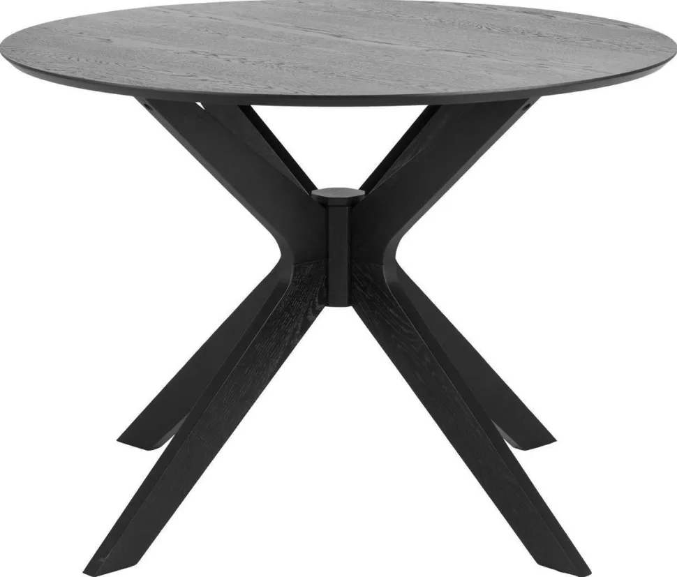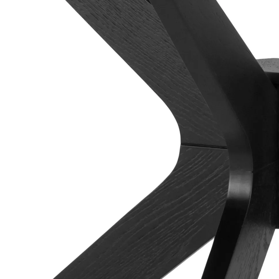 Stół Duncan wykonany został z dębowego forniru oraz drewna dębu. Czarny fornirowany dębem blat idealnie współgra z dębową również pomalowaną na czarno podstawą. Ustawiona pod kątem dębowa podstawa jest nietuzinkowa, a zarazem stabilna. Rozszerzające się nogi dodają całości lekkości oraz nietuzinkowego designu. Stół utrzymany został w stylu lat 70tych, a dodatkowo sprawdzi się świetnie w eklektycznych, skandynawskich czy klasycznych wnętrzach. Stół Duncan będzie idealnym stołem do jadalni, stołem do kuchni lub jako stół do salonu. Ciekawy wygląd i niezwyczajne nogi stołu ozdobią każde wnętrze.Waga stołu: 22,9 kg
