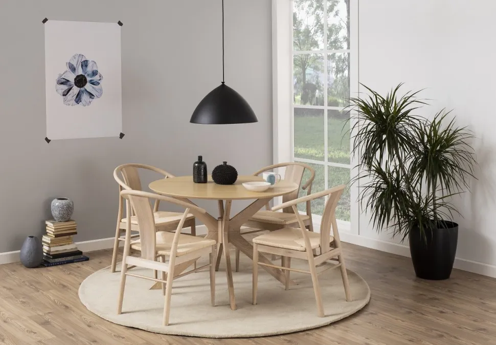 Stół Duncan naturalny boho został wykonany z najlepszych materiałów. Blat stołu wykonany jest z płyty MDF, natomiast podstawa z forniru dębowego. Takie połączenie materiałów gwarantuje trwałość i wytrzymałość mebla. Dodatkowo, nowoczesny design stołu, utrzymany w stylu lat 70-tych, sprawia, że stół ten będzie pasował do różnych stylów wnętrz – od eklektycznych, przez skandynawskie, aż po klasyczne.