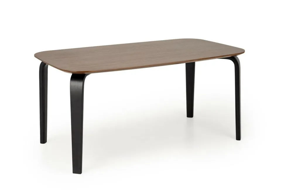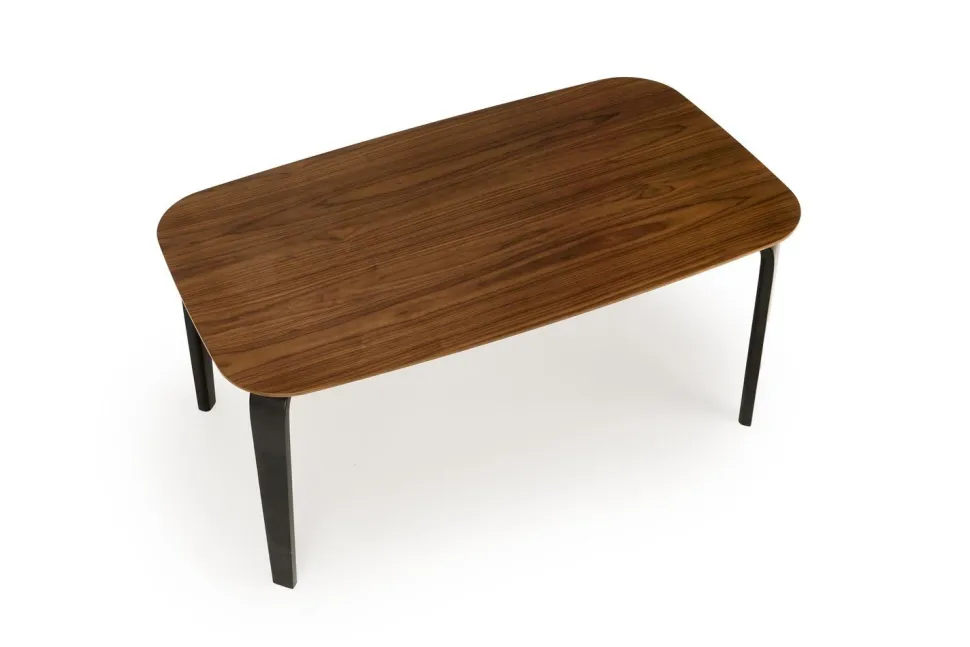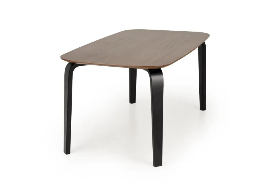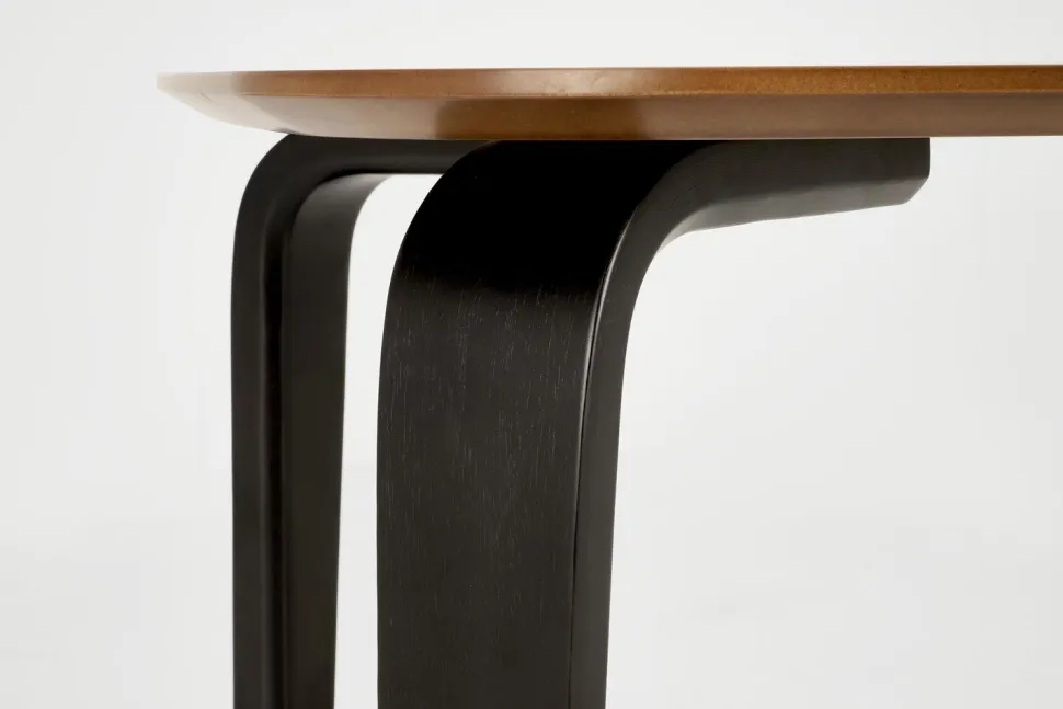 - Blat wykonany z płyty MDF pokrytej naturalnym fornirem oraz solidne, czarne nogi z litego drewna kauczukowego