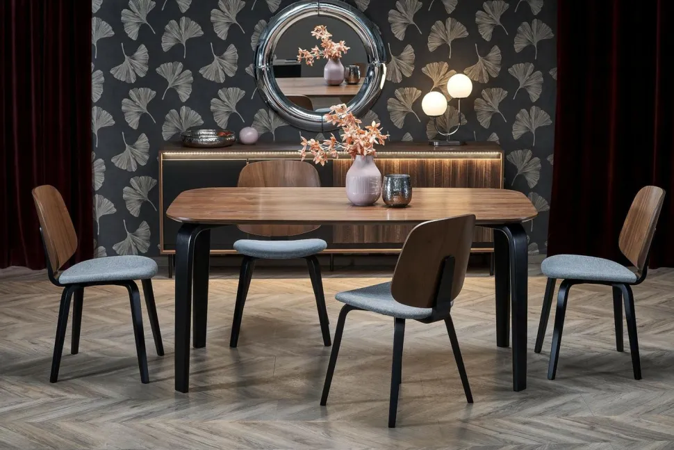 Stół Filore to nie tylko piękny, ale także solidny mebel. Jego nogi wykonane z litego drewna kauczukowego, pomalowane na głęboki czarny kolor, zapewniają stabilność i wytrzymałość na lata. Te czarne nogi wspaniale kontrastują z ciepłym odcieniem blatu, tworząc harmonijną, a zarazem dynamiczną kompozycję. Takie połączenie materiałów i kolorów sprawia, że stół staje się centralnym punktem każdego pomieszczenia, dodając mu charakteru i stylu.