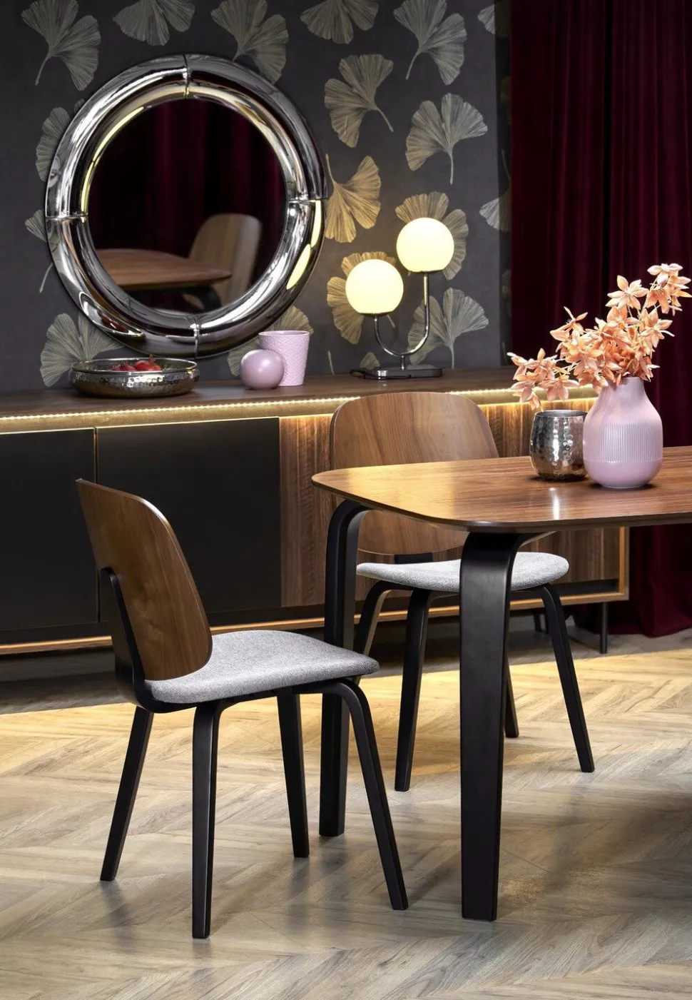 Stół Filore w kolorze orzechowym to wyjątkowy mebel, który łączy w sobie elegancję z funkcjonalnością. Jego prostokątny blat o zaokrąglonych krawędziach wyróżnia się subtelnym, a jednocześnie wyrafinowanym designem, który doskonale wpisuje się w nowoczesne, jak i klasyczne wnętrza. Wykonany z najwyższej jakości płyty MDF pokrytej naturalnym fornirze orzechowym, blat stołu emanuje ciepłem i przytulnością, wnosząc do przestrzeni naturalny, organiczny urok.