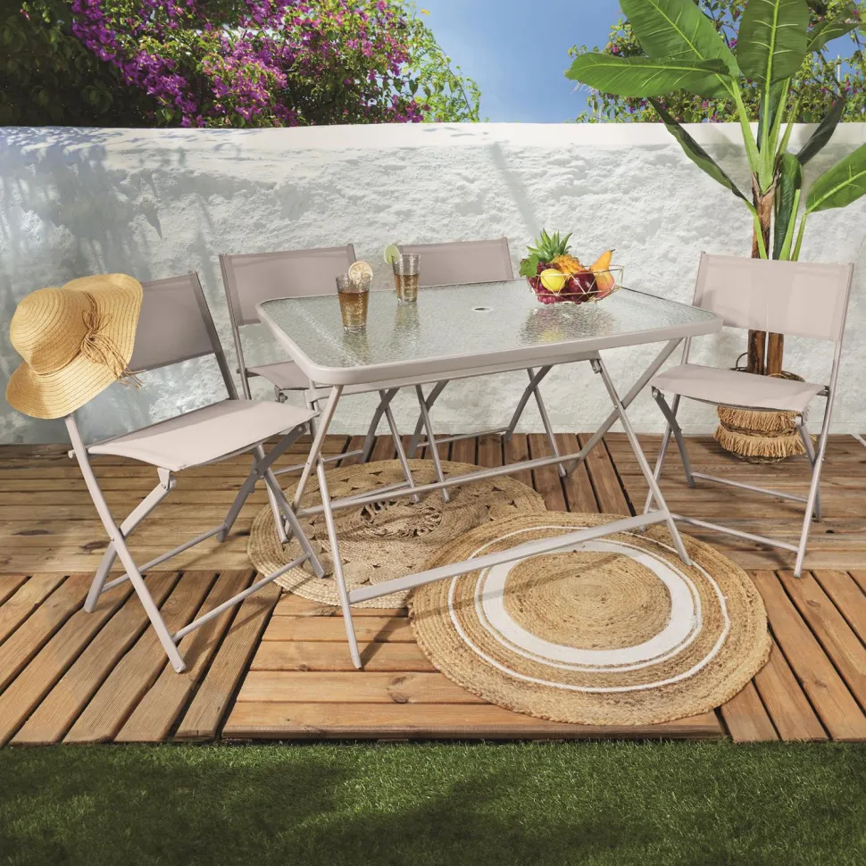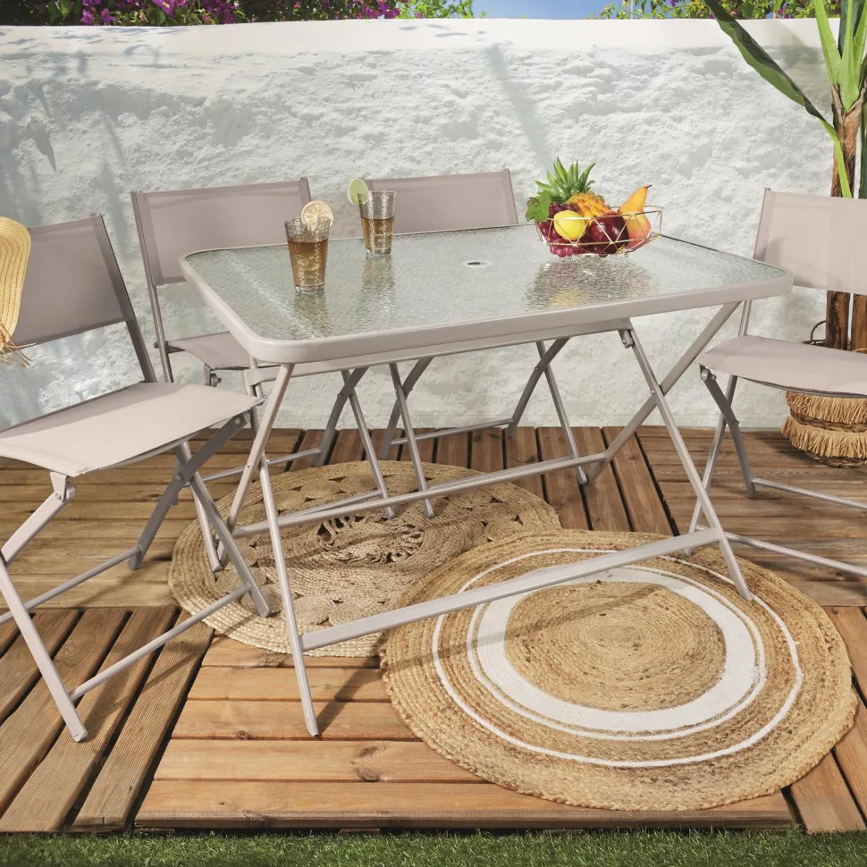 Stół ogrodowy ze szklanym, hartowanym blatem i metalowymi nogami to eleganckie i praktyczne rozwiązanie do Twojego ogrodu lub na taras. Jego wymiary to 110 cm długości, 70 cm wysokości i 75 cm głębokości, co sprawia, że jest idealnym meblem na rodzinne spotkania na świeżym powietrzu. Wykonany z trwałych materiałów: szkła hartowanego i stali malowanej proszkowo, stół jest odporny na warunki atmosferyczne i zapewnia długotrwałe użytkowanie przez wiele sezonów. Stół waży 14,6 kg, dzięki czemu możemy w łatwy sposób go przestawiać i na nowo aranżować nasz taras w miarę potrzeby. Dodatkowym atutem jest możliwość złożenia stołu, co ułatwia jego przechowywanie i oszczędza miejsce. Stylowy wygląd szklanego blatu doskonale komponuje się z nowoczesnymi metalowymi nogami, nadając mu elegancji i lekkości. Idealny wybór na każdą zewnętrzną przestrzeń, zapewnia komfort i estetykę.