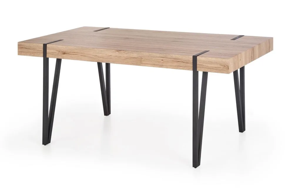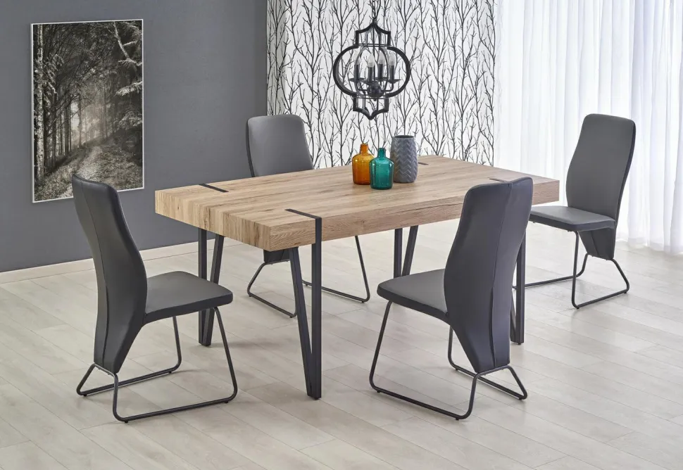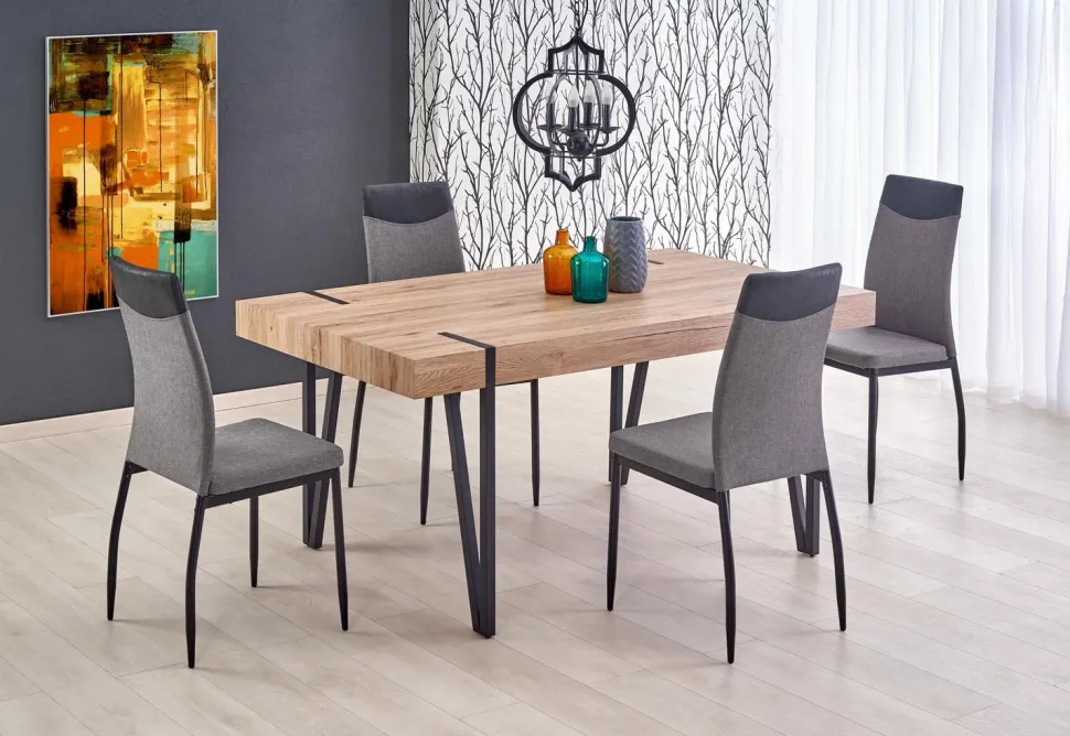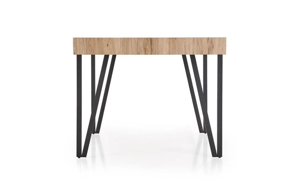 Ten stylowy stół to idealne rozwiązanie dla osób, które cenią sobie nowoczesny design oraz wysoką jakość wykonania. Został wykonany z MDF laminowanego oraz stali malowanej proszkowo, co zapewnia mu wytrzymałość i odporność na uszkodzenia. Blat w kolorze dąb san remo doskonale pasuje do czarnych nóg, co nadaje mu eleganckiego wyglądu.